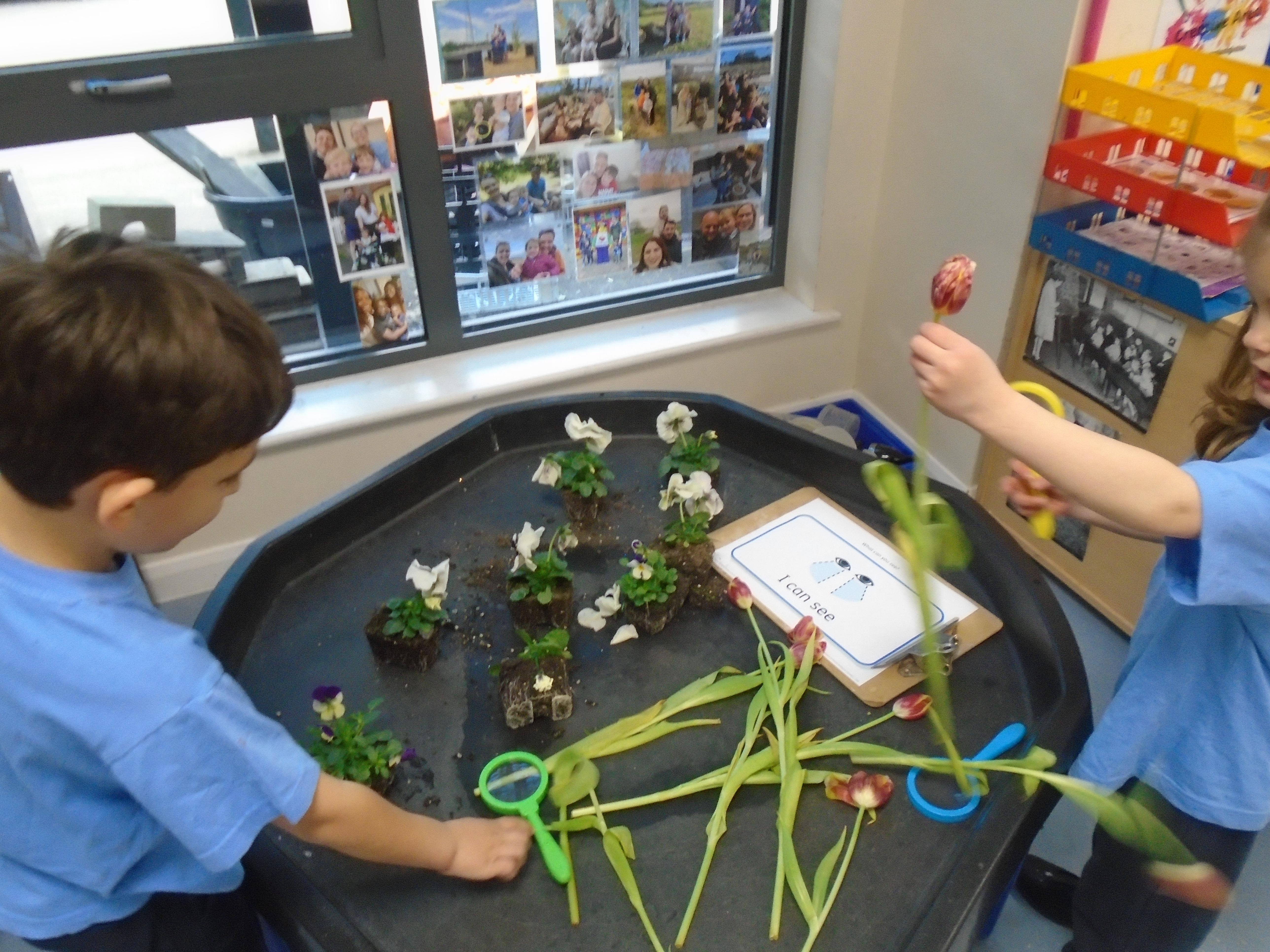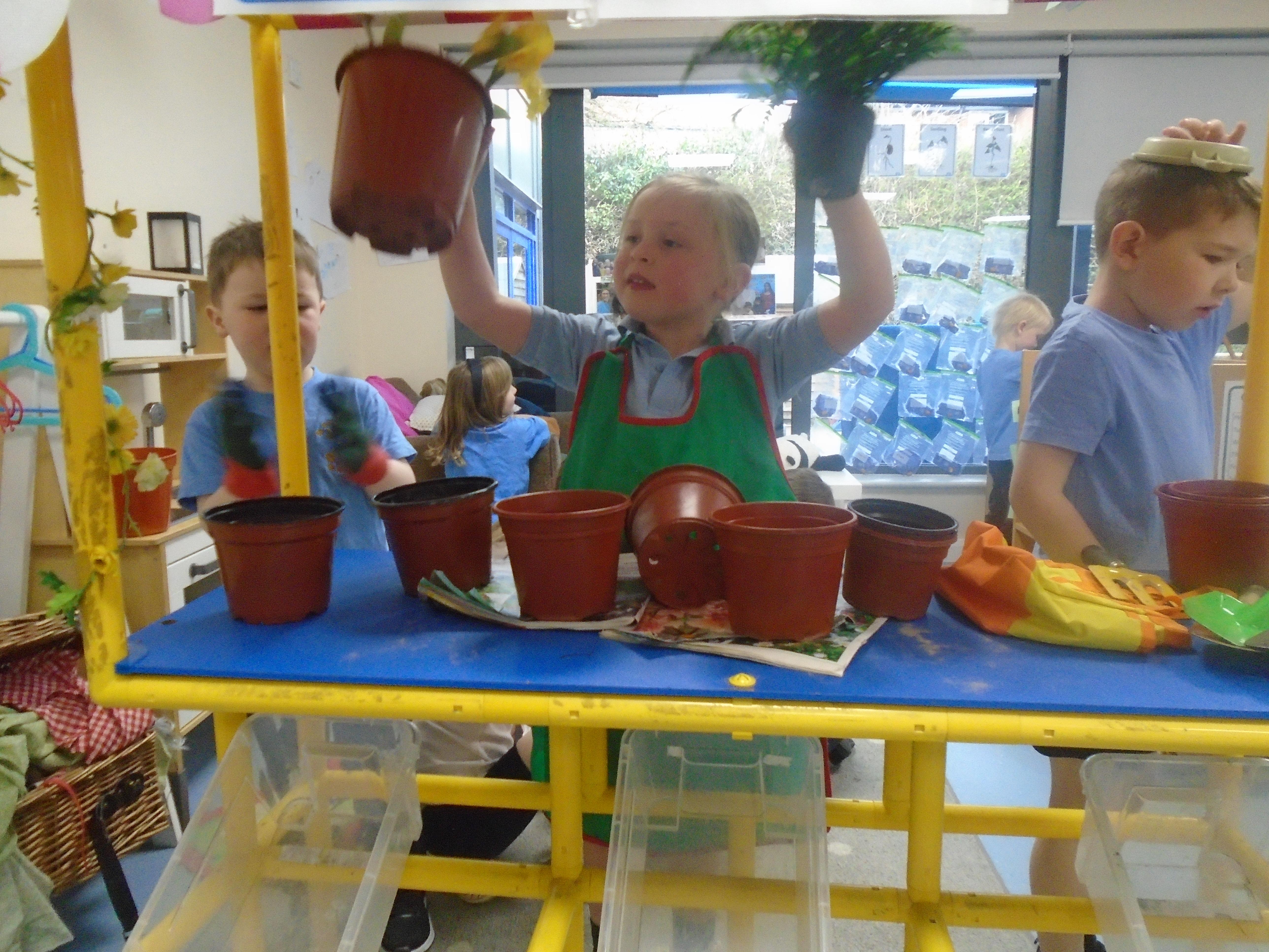 This week we have been learning all about growing! We planted our own bean, we explore the parts of real plants, we role played garden centres and we went on a walk to look for the signs of spring!
