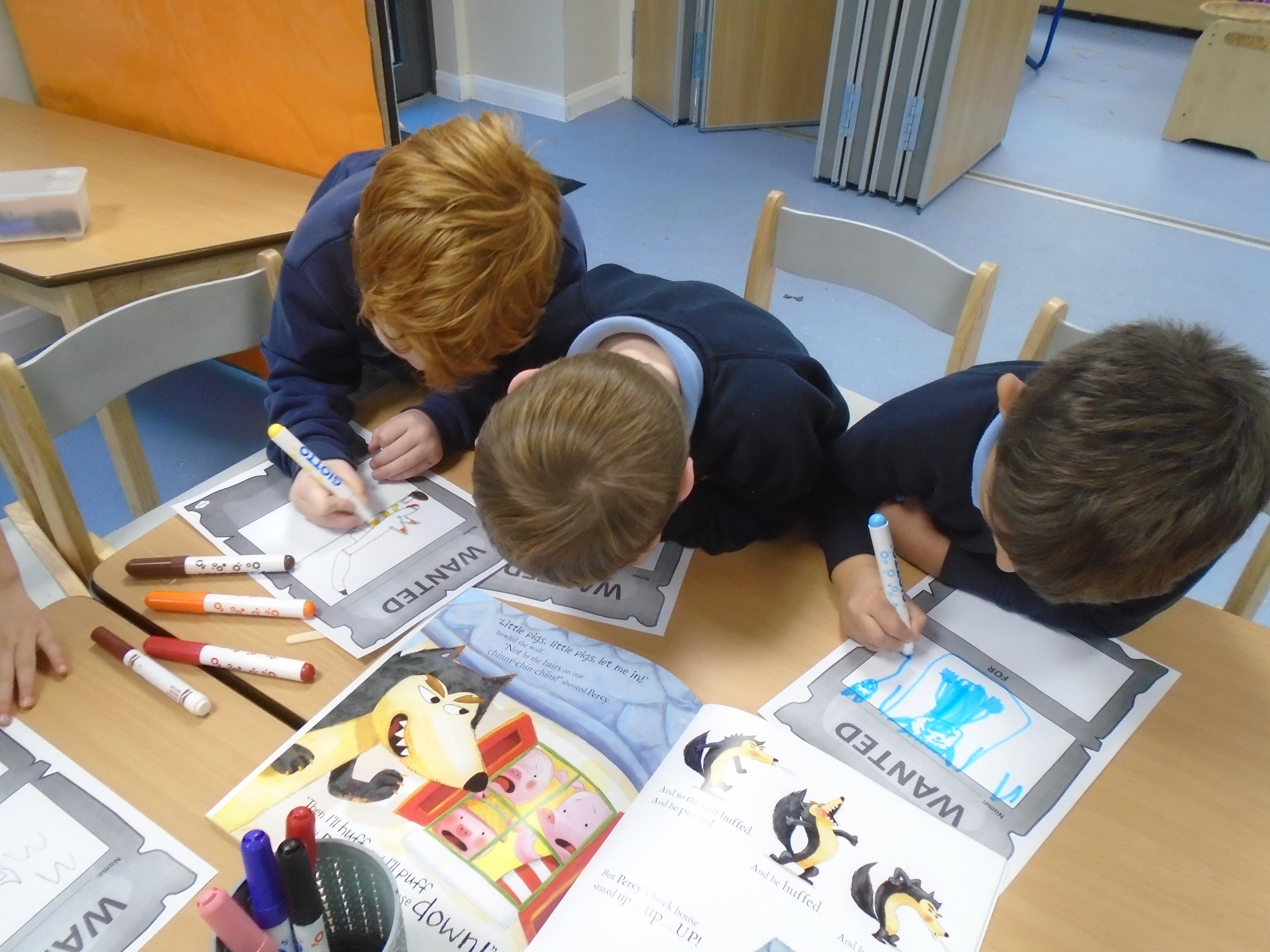 This week our key text was The Three Little Pigs. We have enjoyed exploring materials for different houses, making wanted posters for the Big Bad Wolf, role playing the story and making puppets!