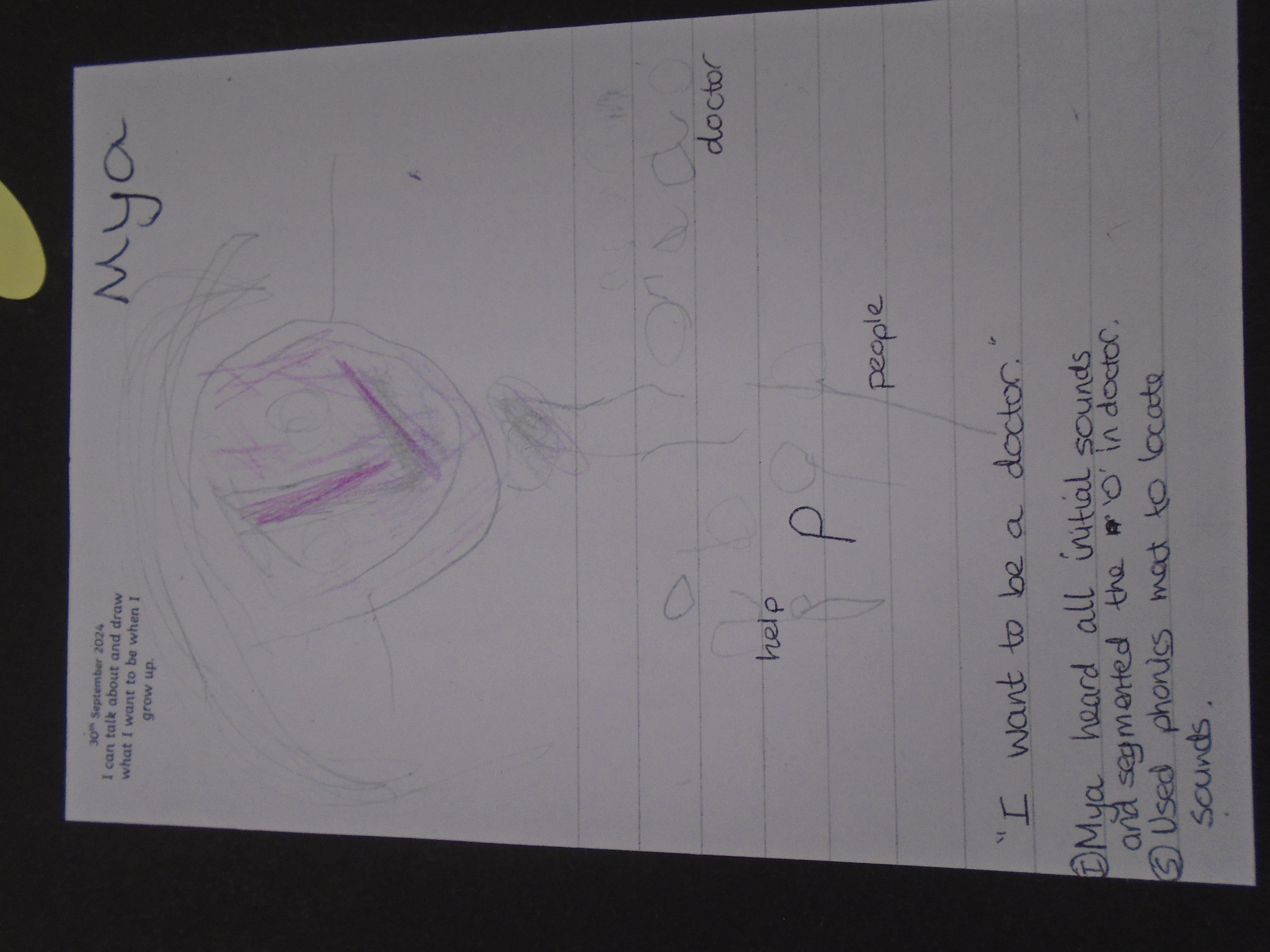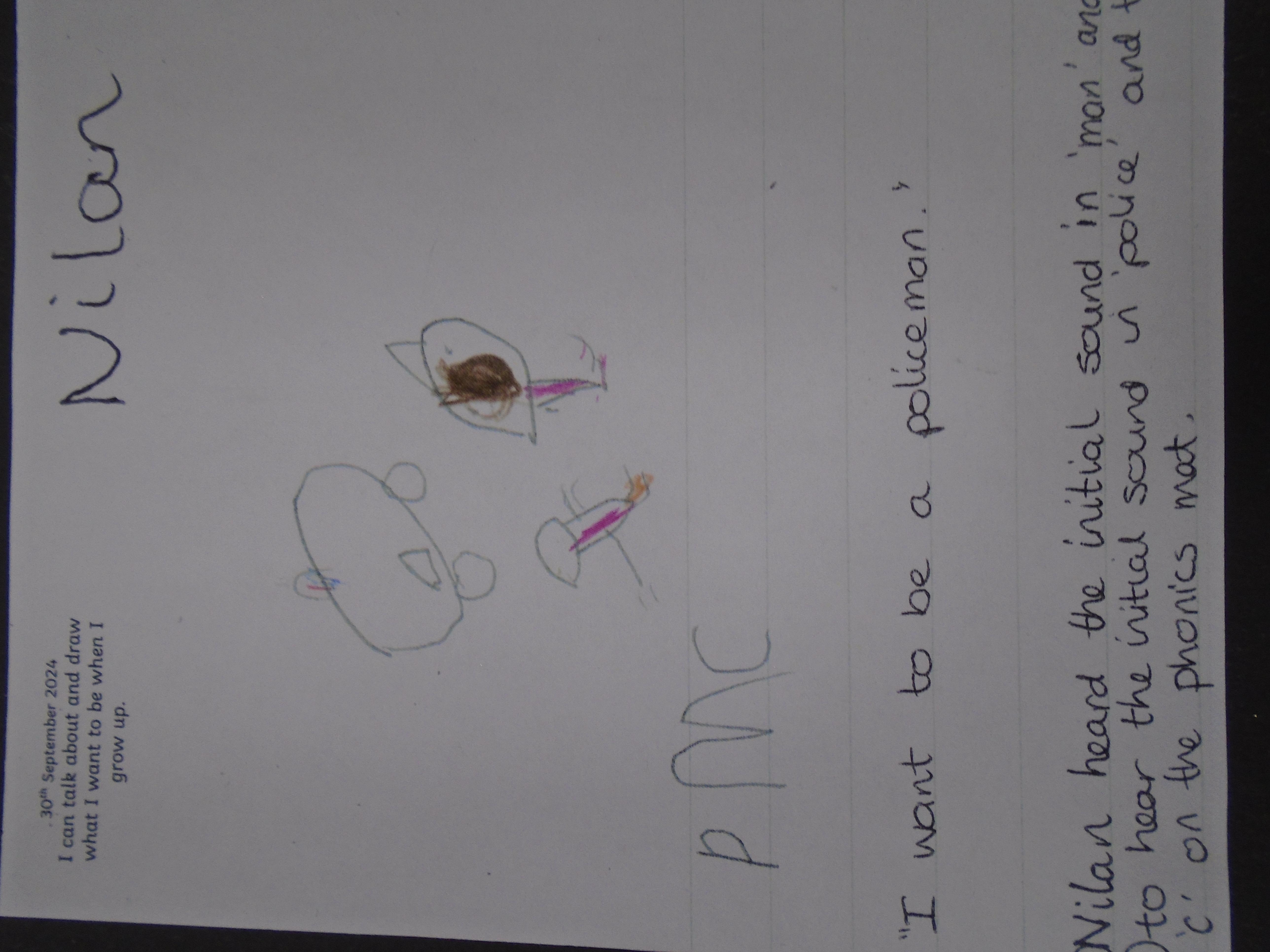 This week we've been thinking about what we want to be when we grow up. We've drawn pictures and practised hearing initial sounds. Here are a few of them!