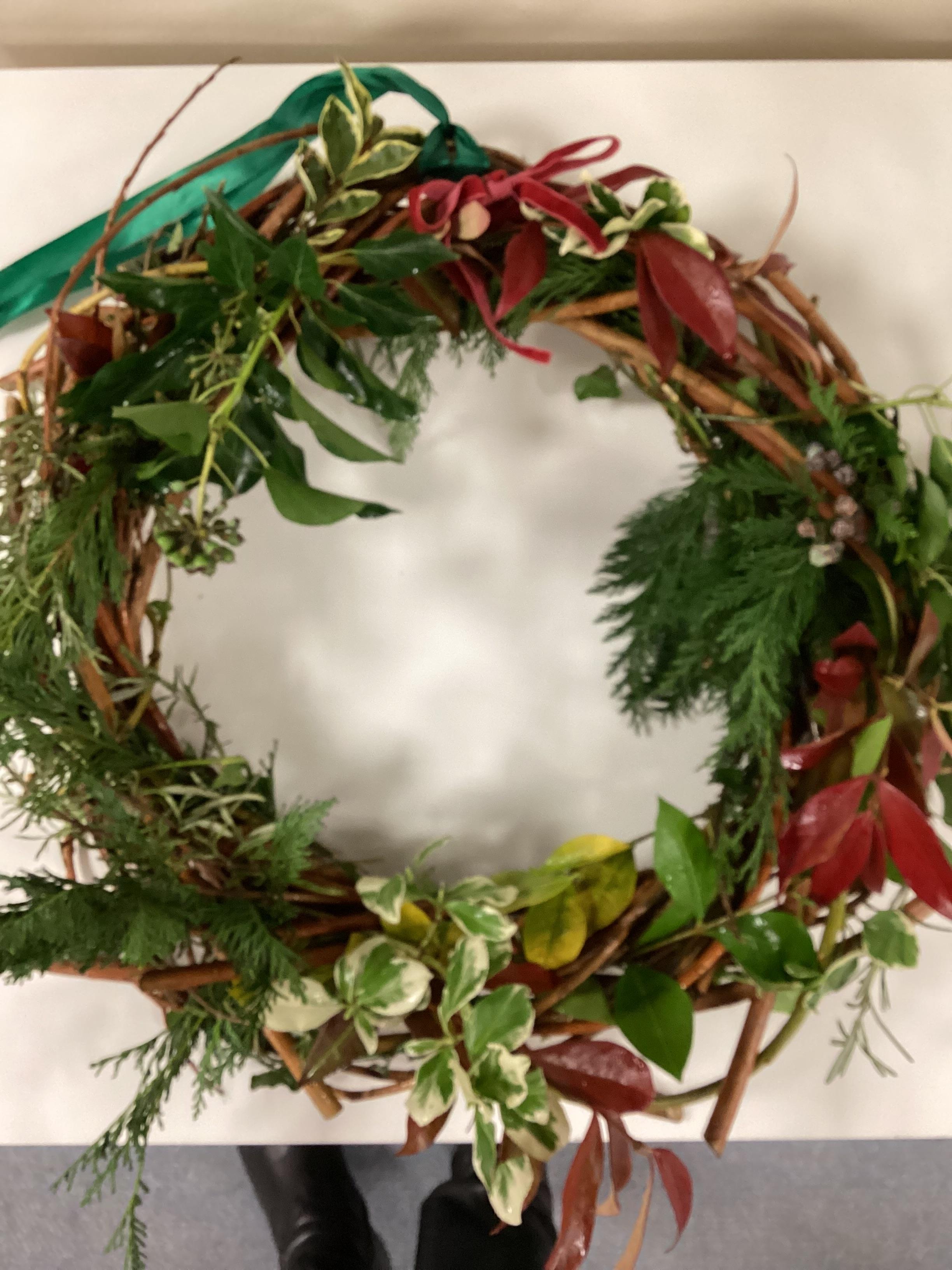 During our final Outdoor Learners session, we made a Christmas wreath using evergreen leaves from the school grounds.