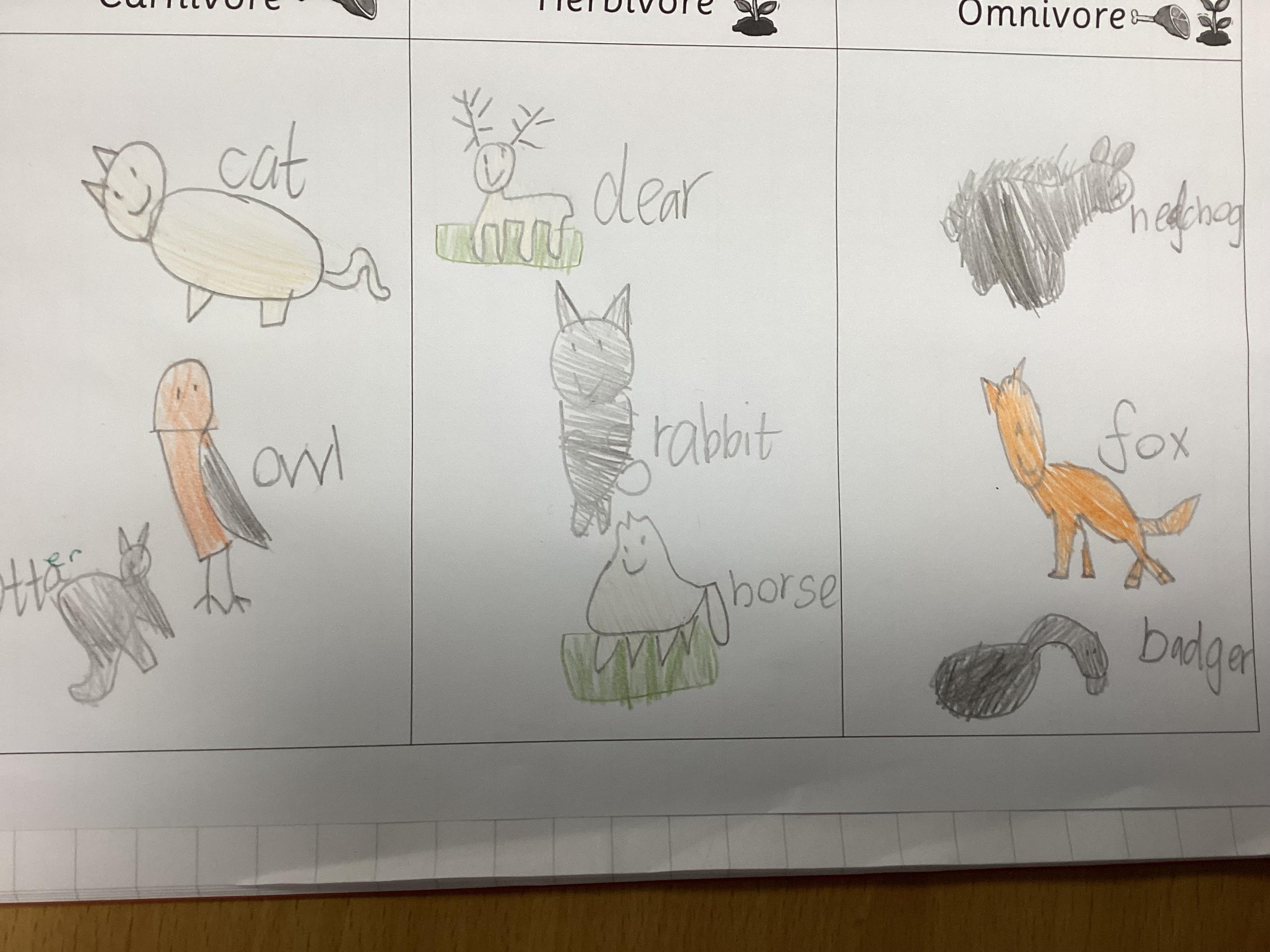 This week in science we have learned that we can sort all animals according to what they eat. These animal groups are called carnivores, herbivores and omnivores.
