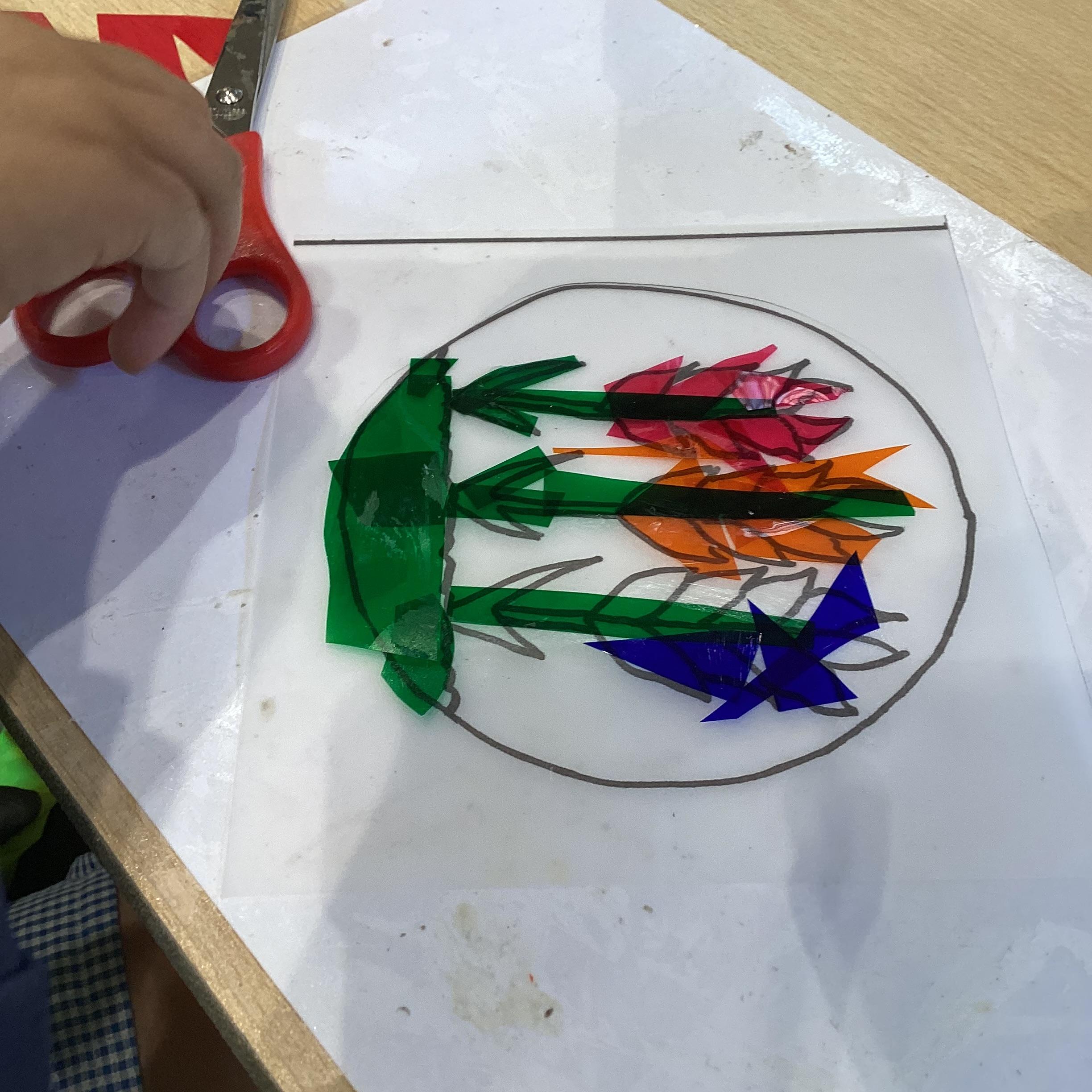 We went to the cathedral on Monday. We looked at the main features of the church such as the lectern, the pulpit and the stained glass windows, then we found out about how the Bible is used by Christians. We read the parable of the sower and made a stained glass window about it.