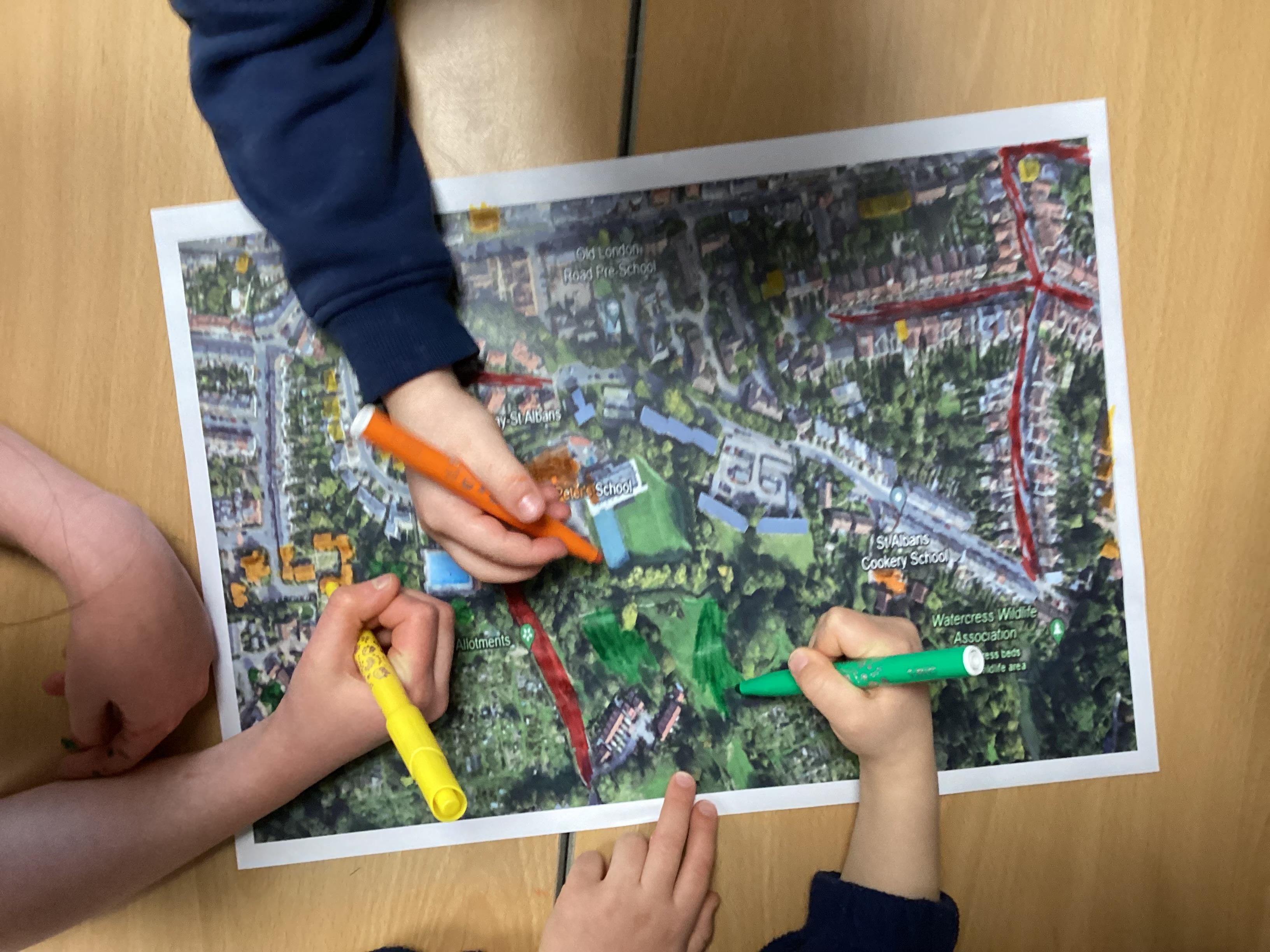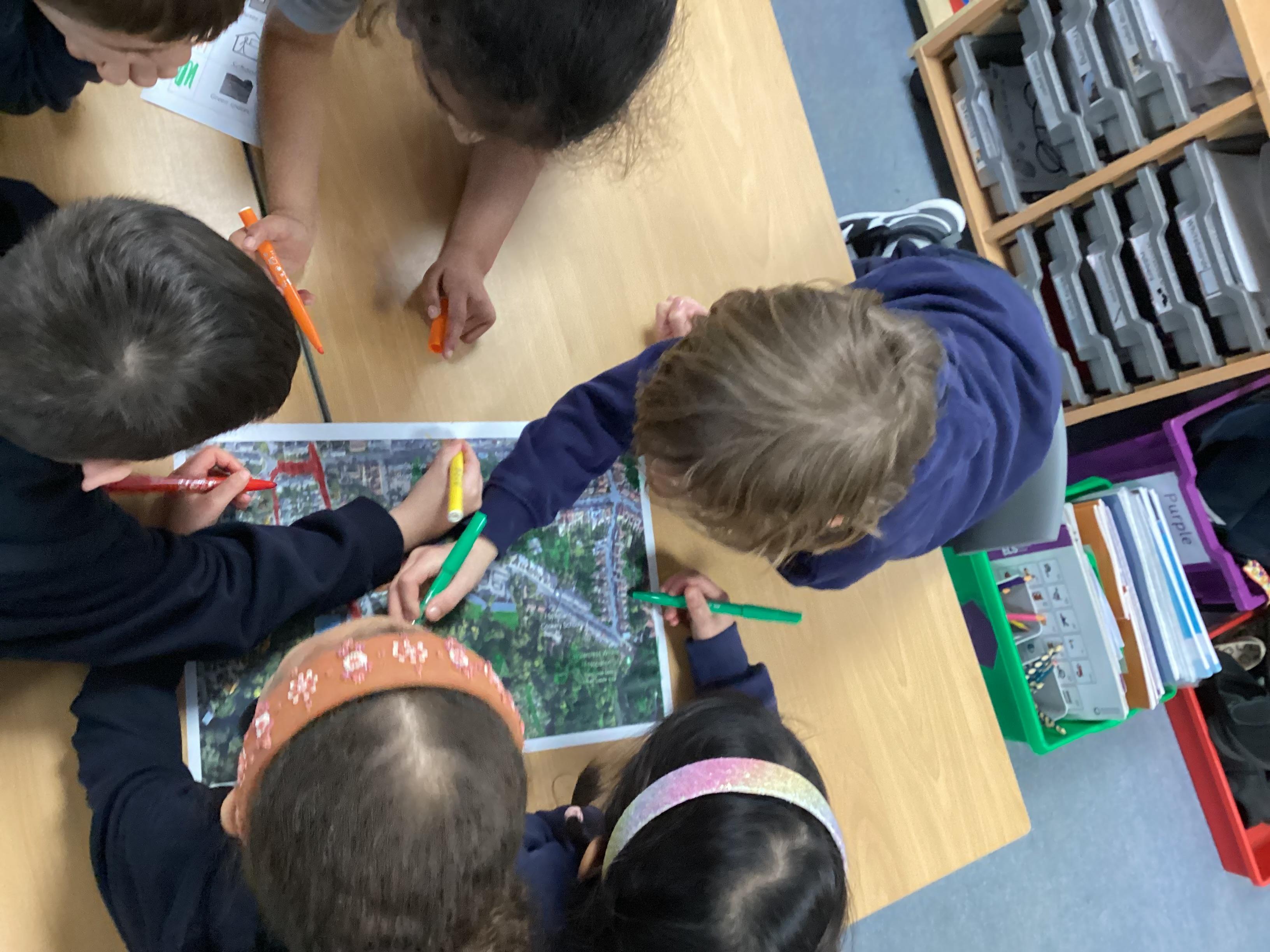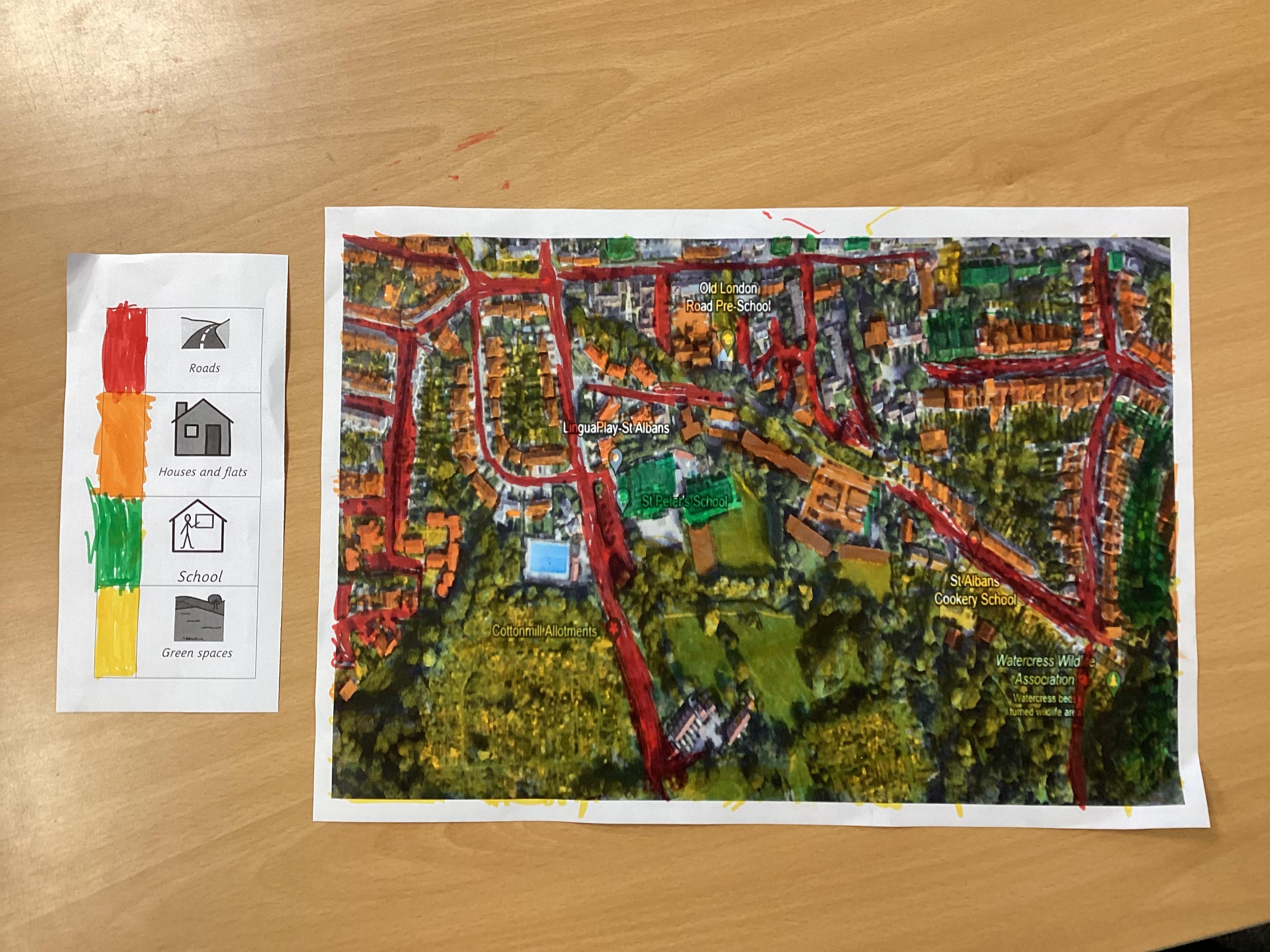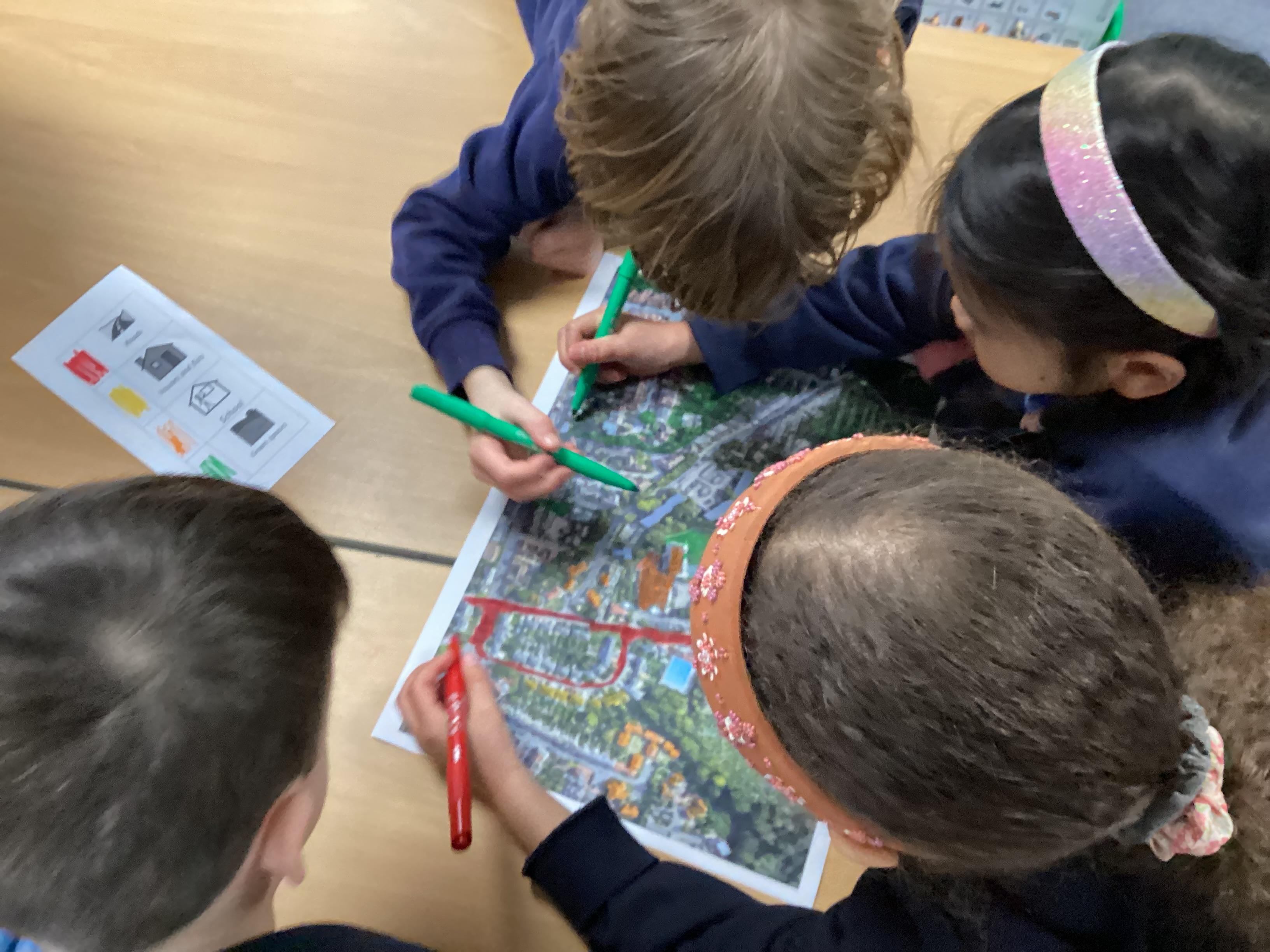In Geography, we looked at a map of the local area and highlighted features such as roads, houses, green space and leisure facilities.