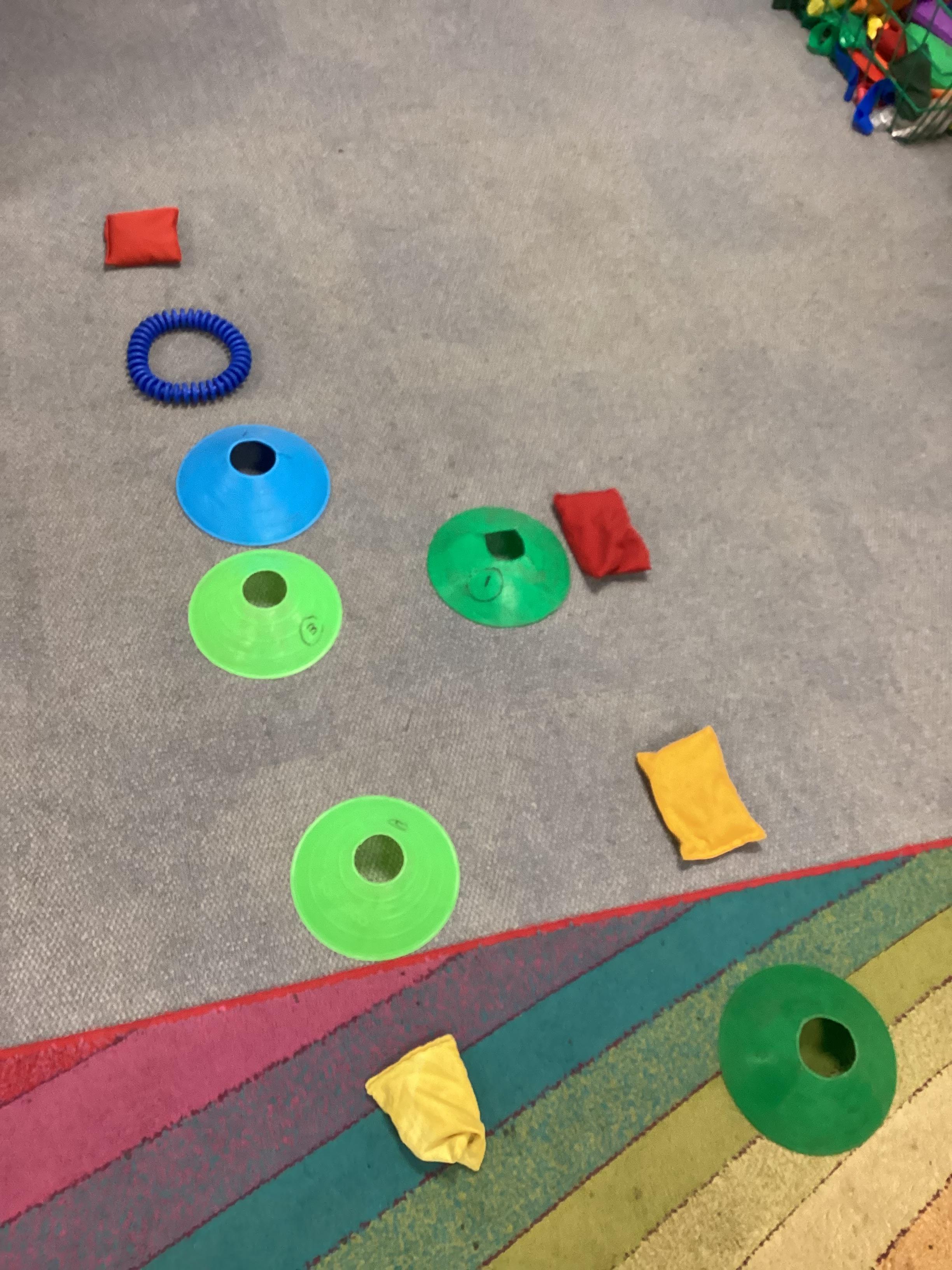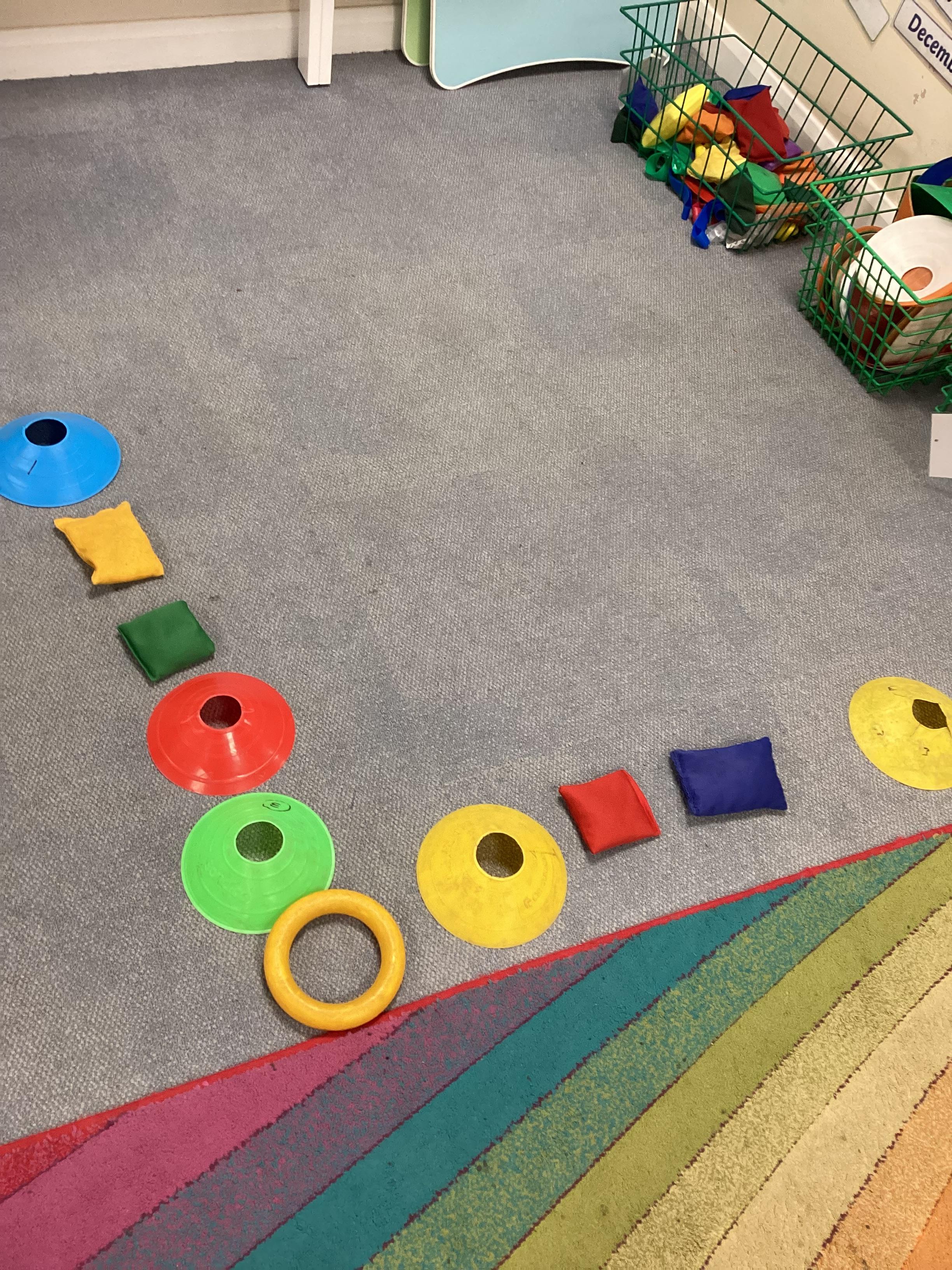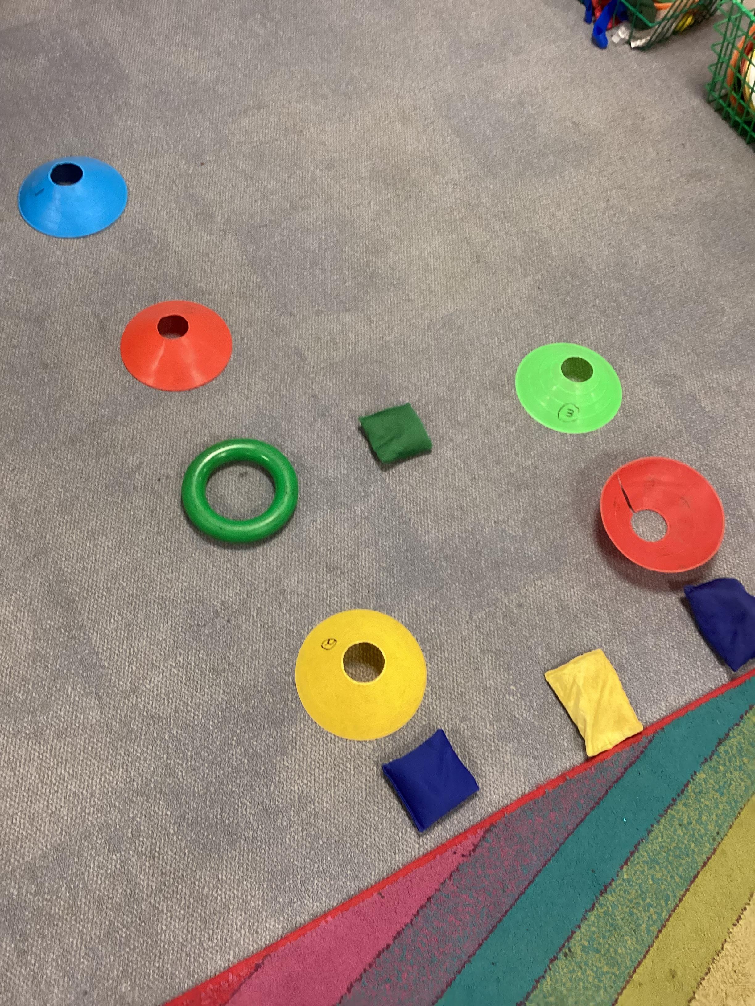 We have continued to practise reading a key. Today we have been making letter shapes with cones, quoits and beanbags.