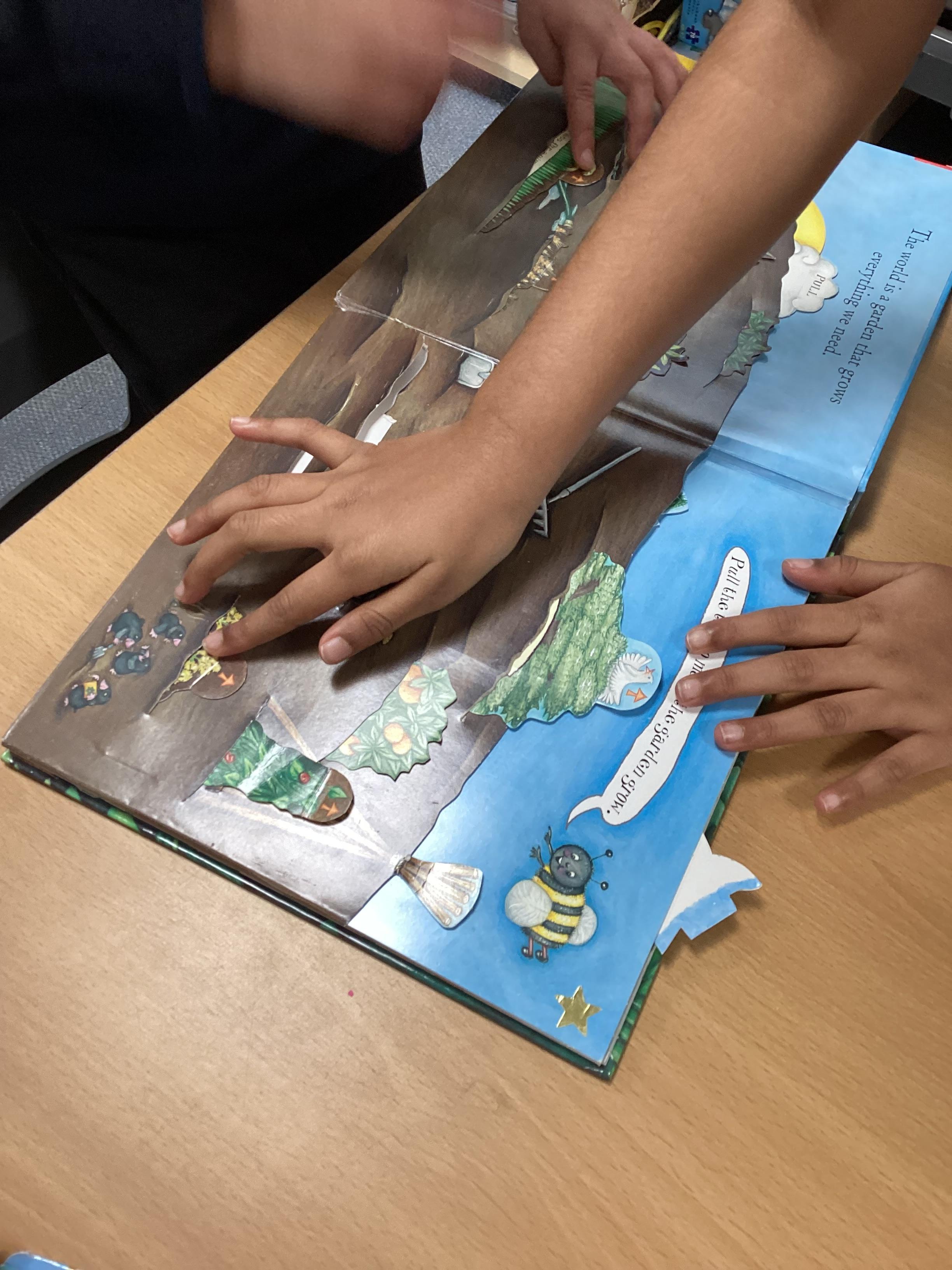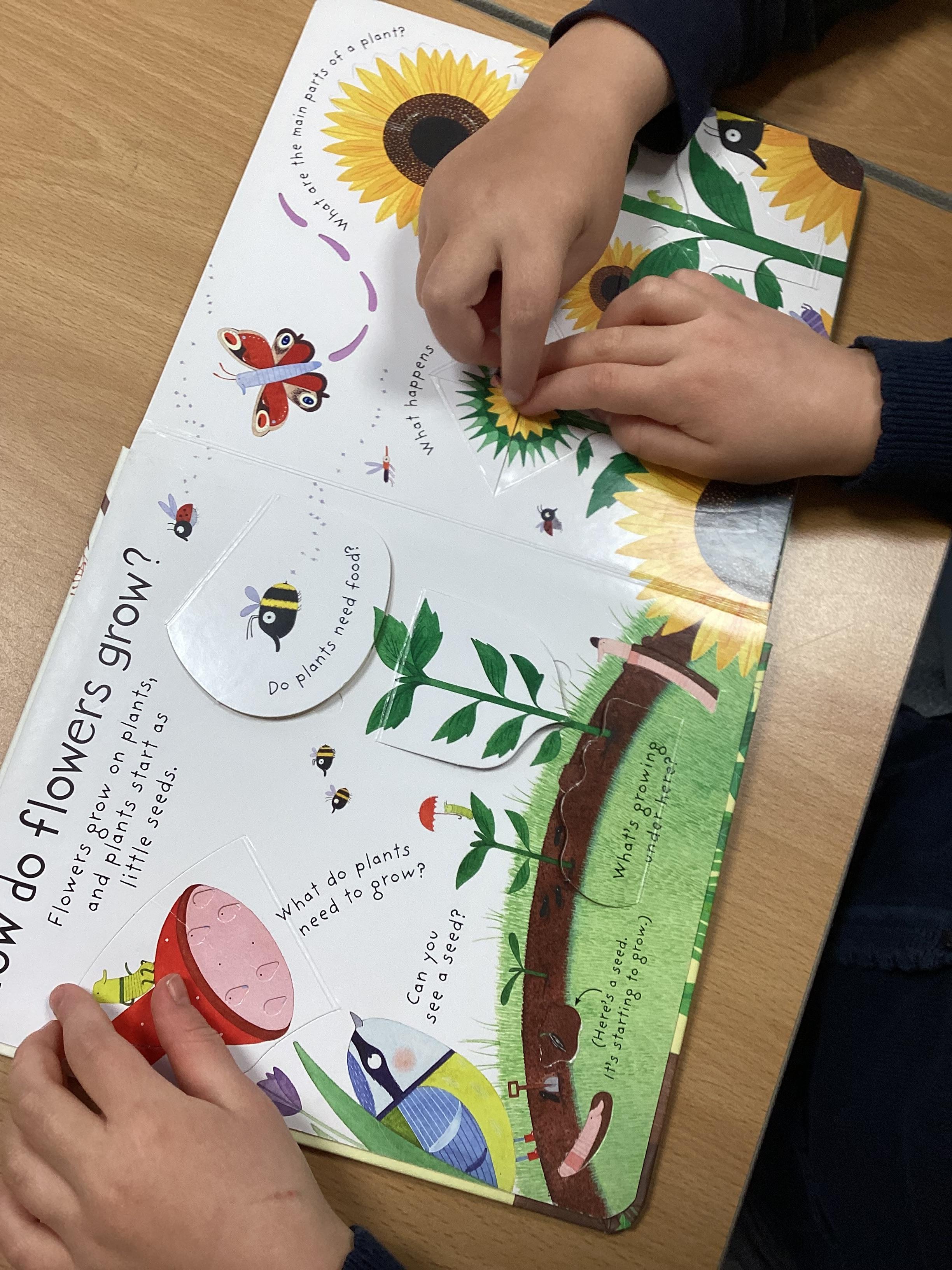 In design technology this half-term, we will be learning how to make a picture with moving parts. We began this week by looking at books and finding examples of lift the flaps, levers and sliders.