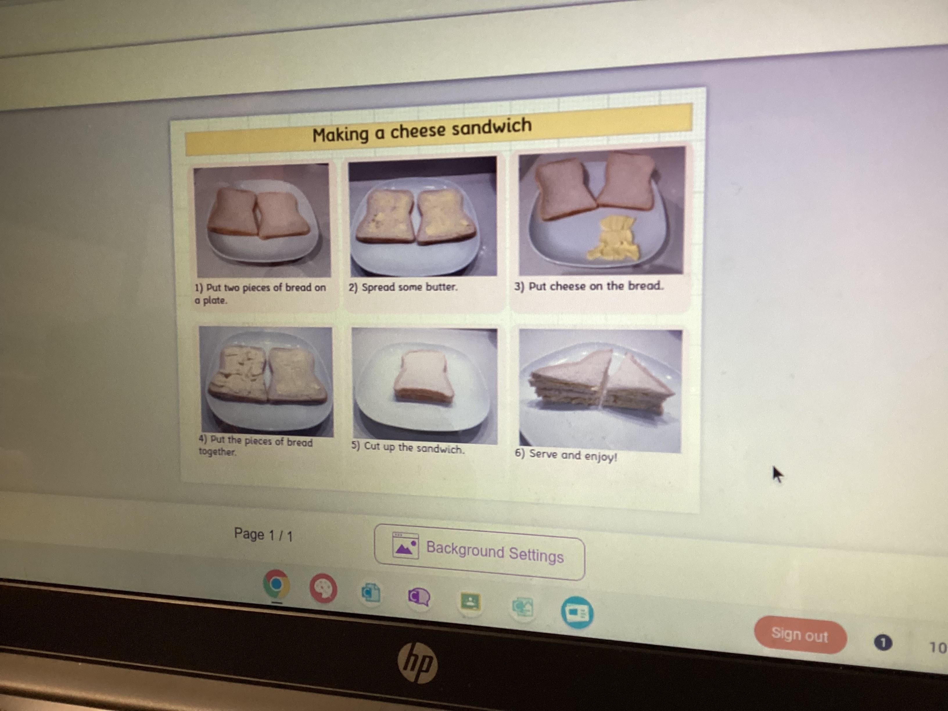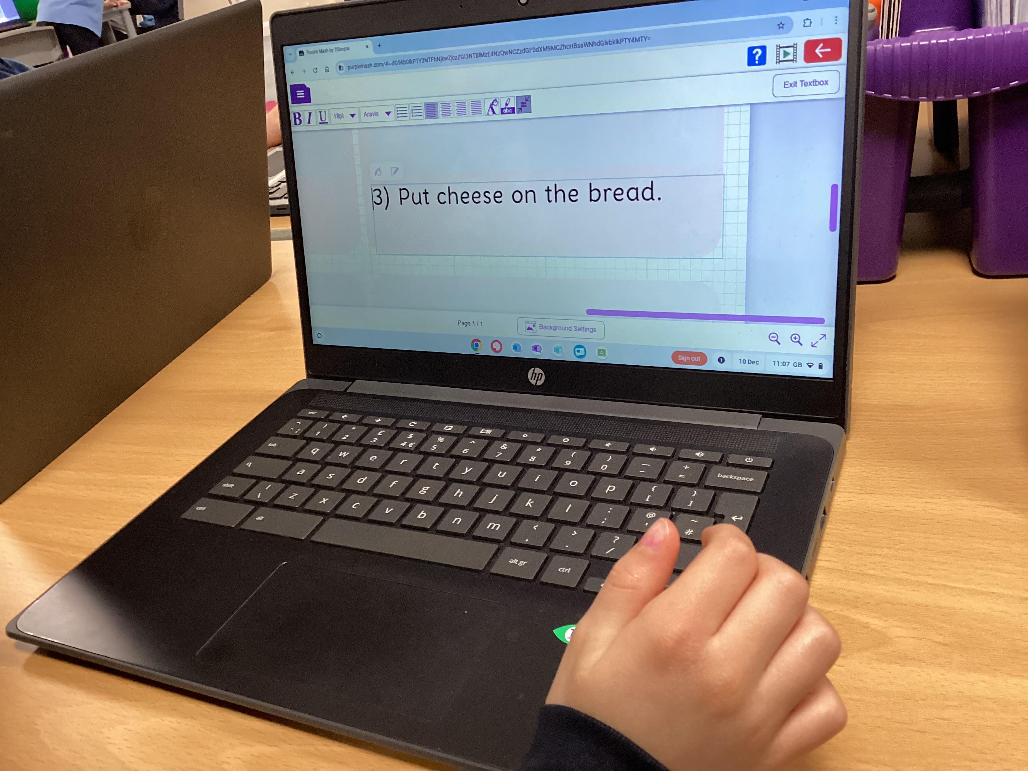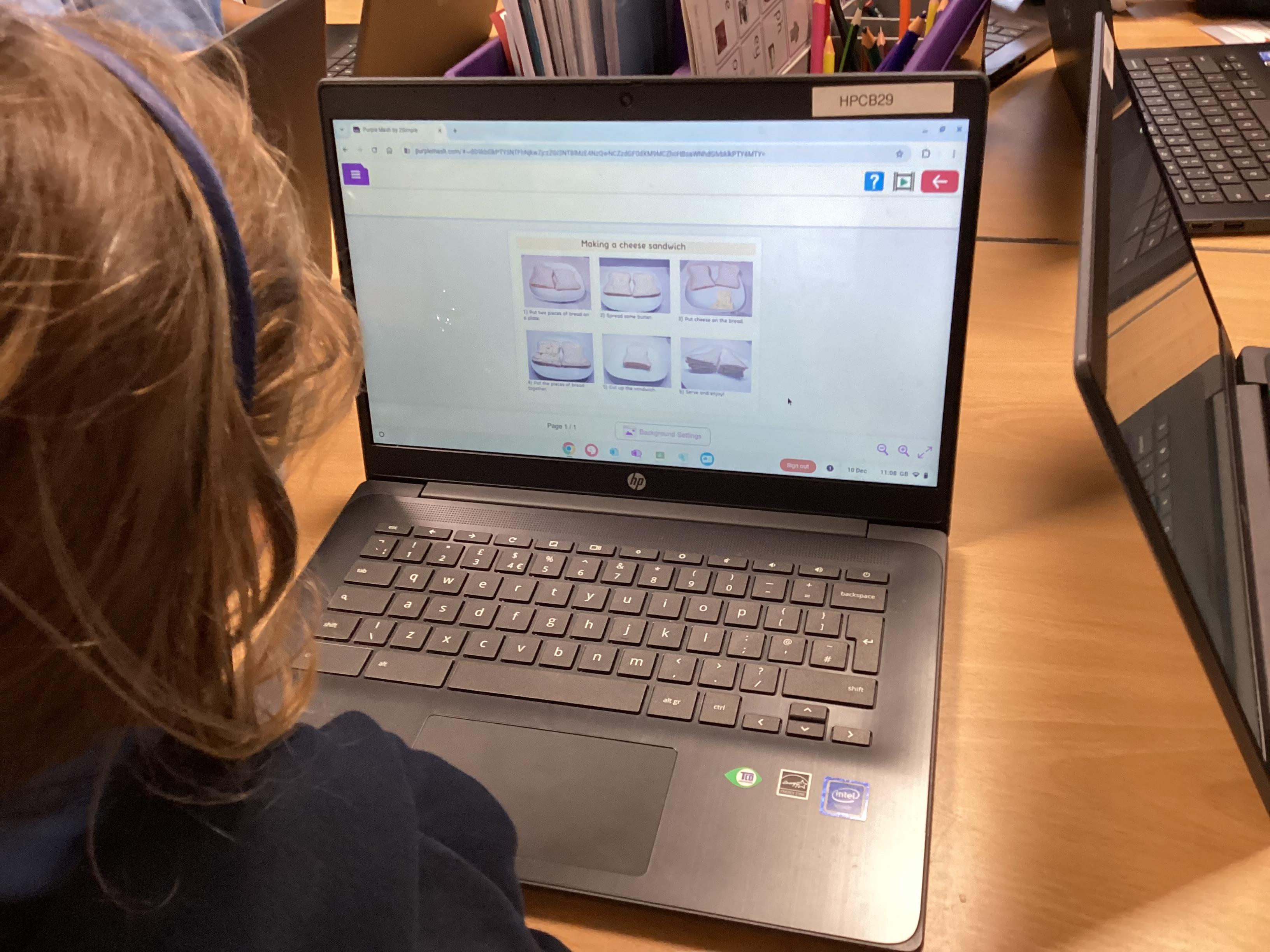 This week in computing, the children have been learning what an 'algorithm' is (a set of instructions for the computer) and the importance of giving those instructions in order. On the laptops the children sequenced pictures and instructions in order to make an algorithm for making a cheese sandwich.