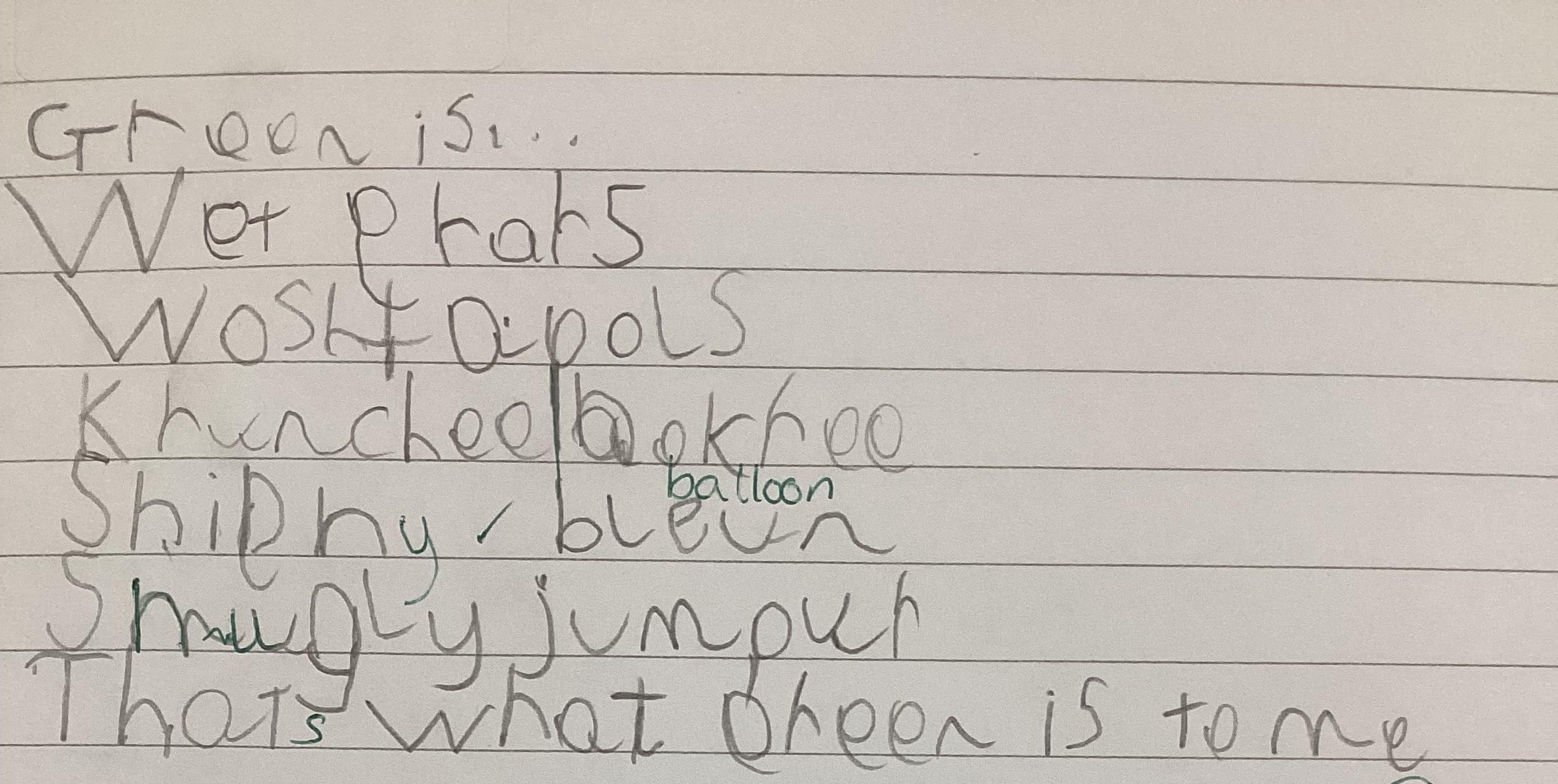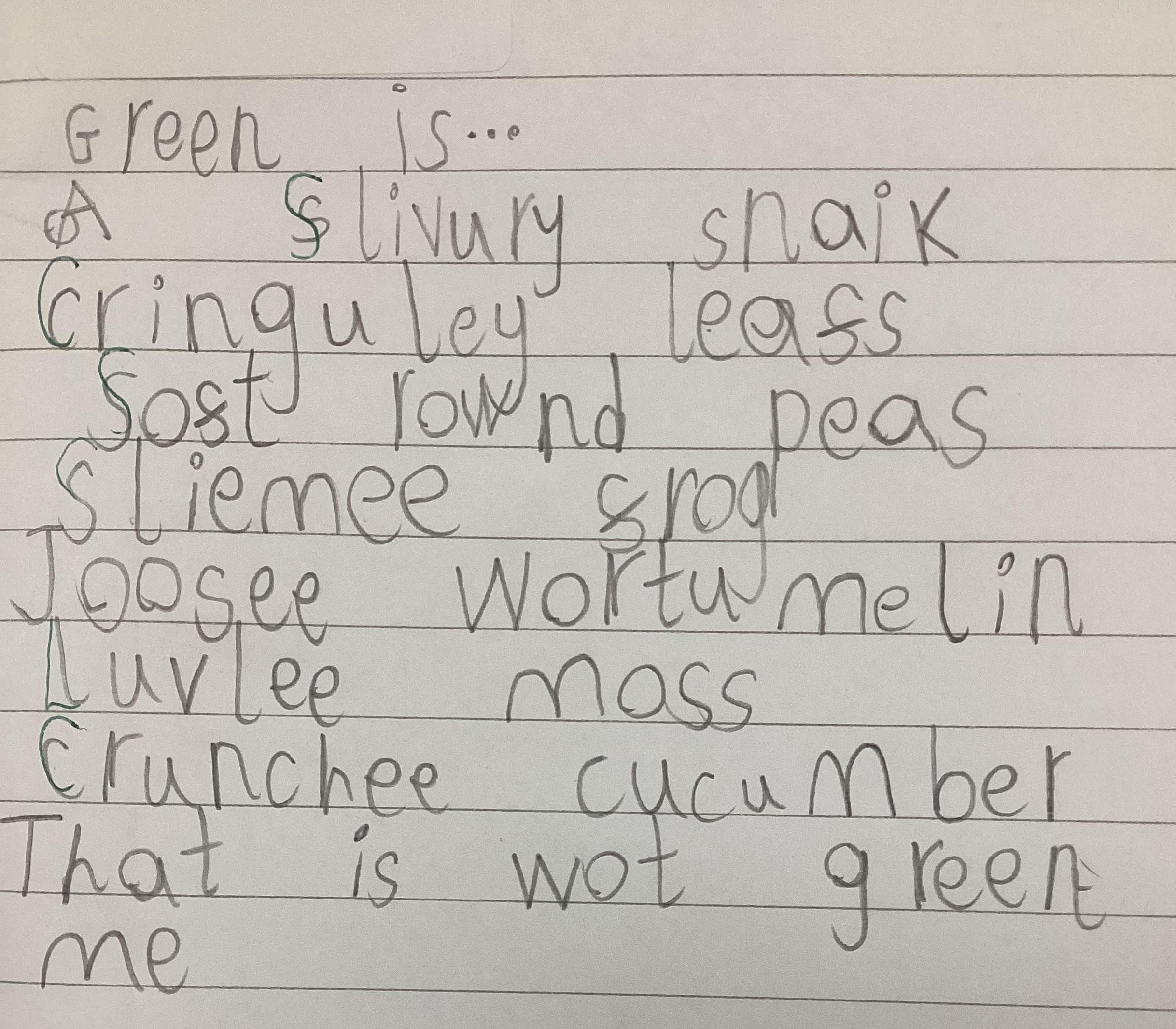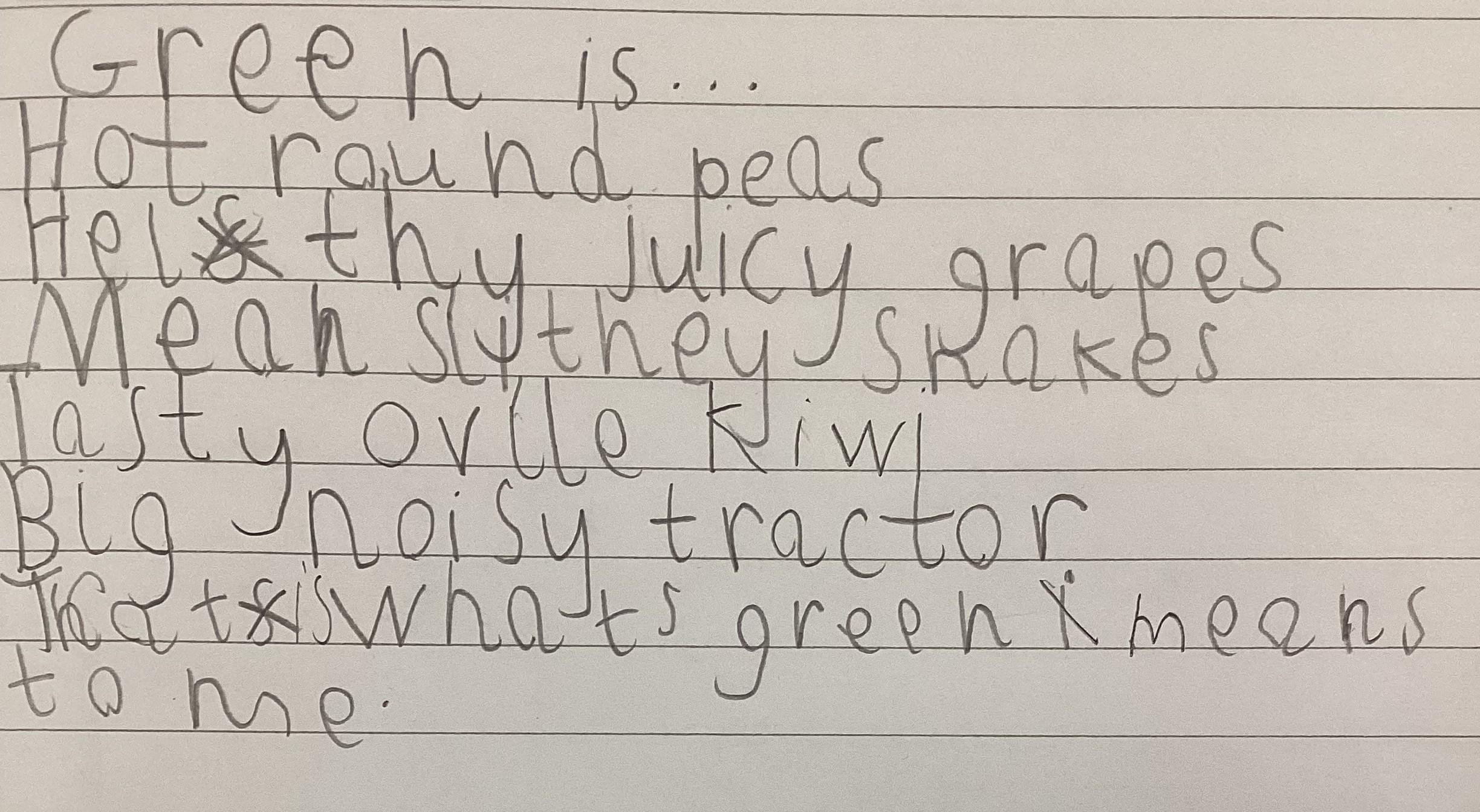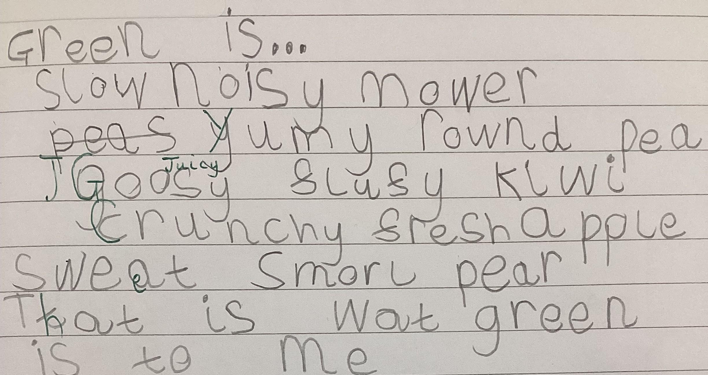 This week in Literacy we have been learning what an adjective is. We wrote poems entitled 'Green is...'. Here are some of them.