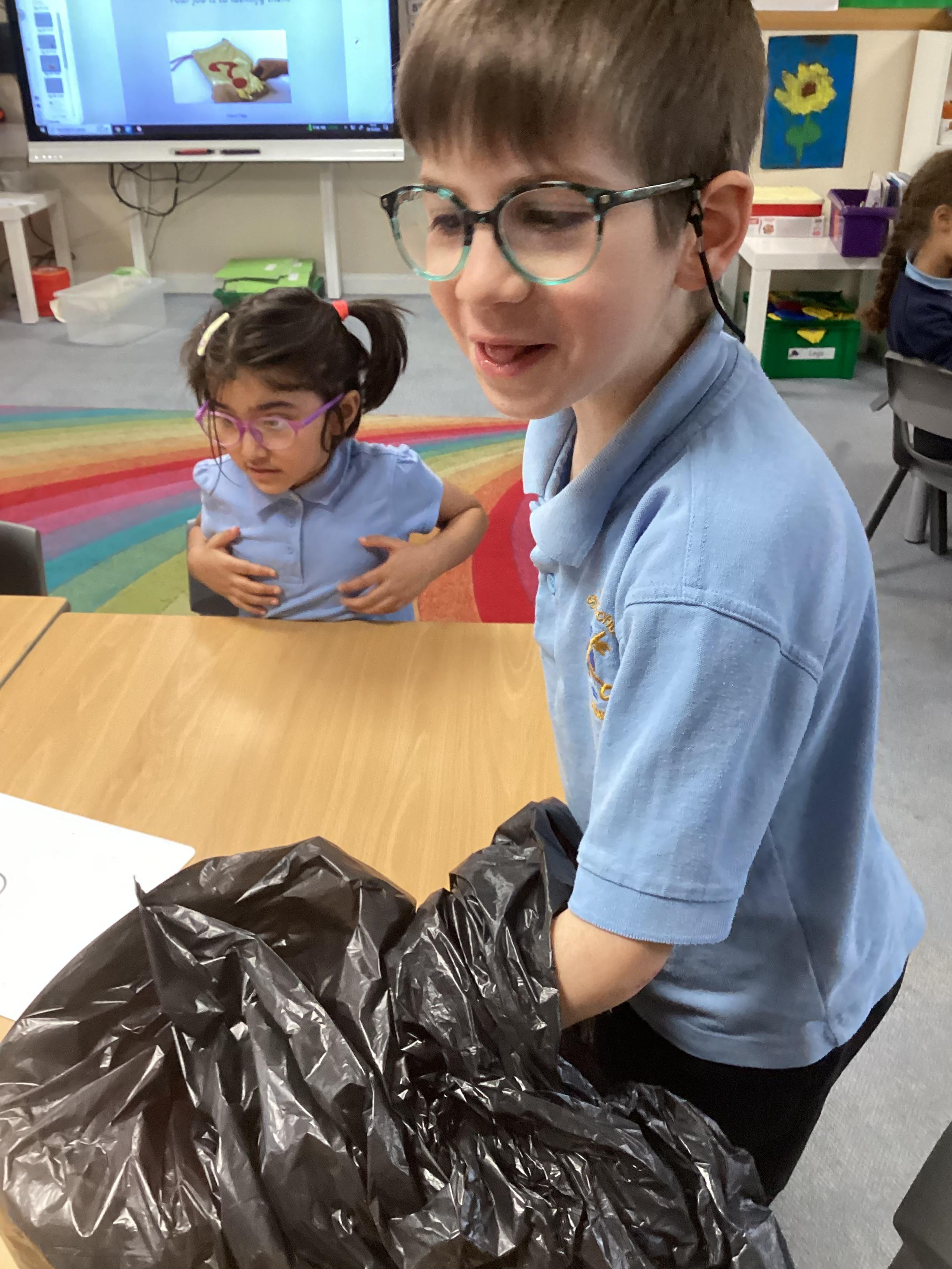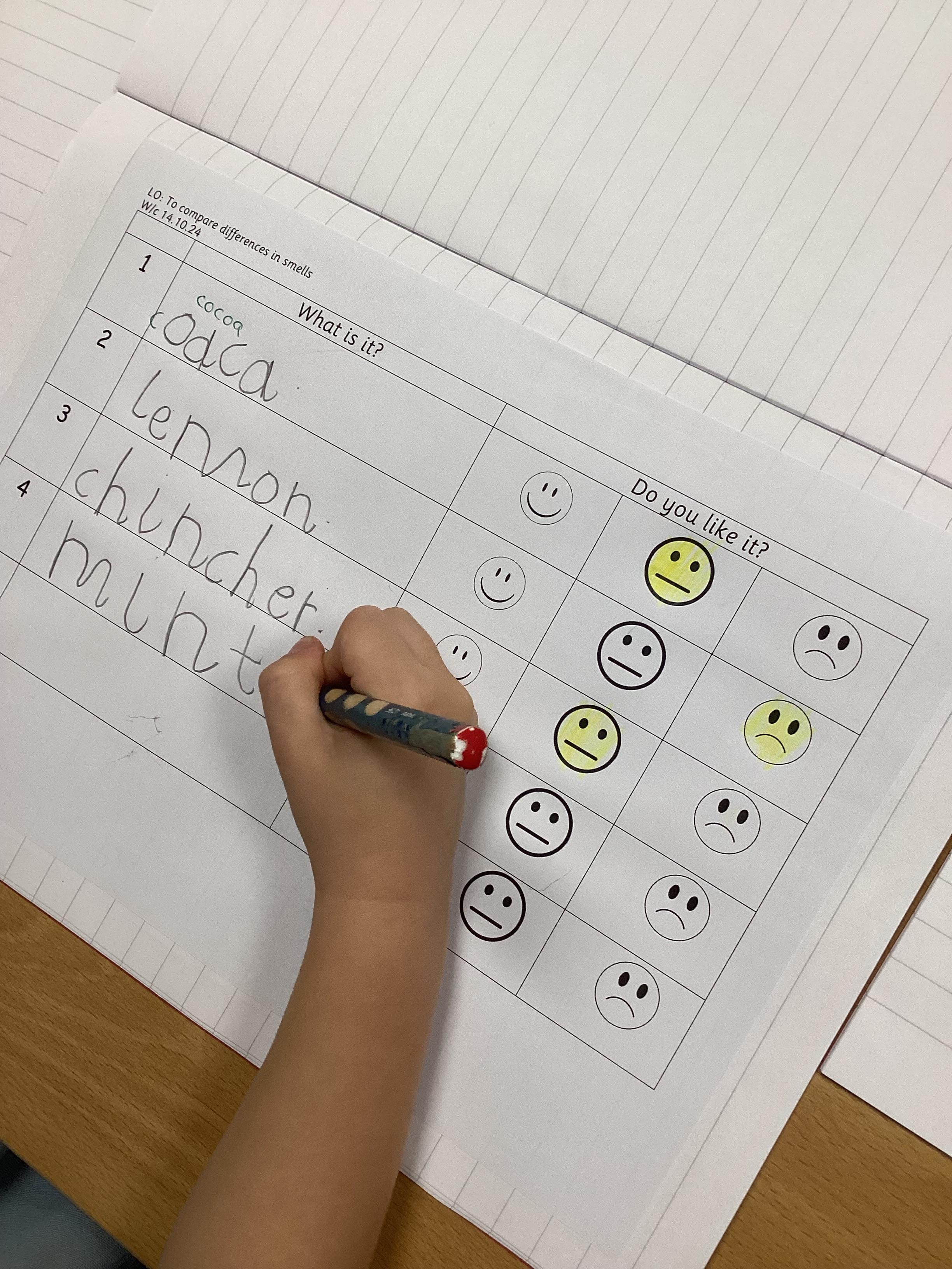 In science we have been learning about the senses. Last week we investigated our sense of touch. We felt things we couldn't see to try to identify them. This week, we have been trying to identify a range of things using our sense of smell only. Perhaps you could try this at home.