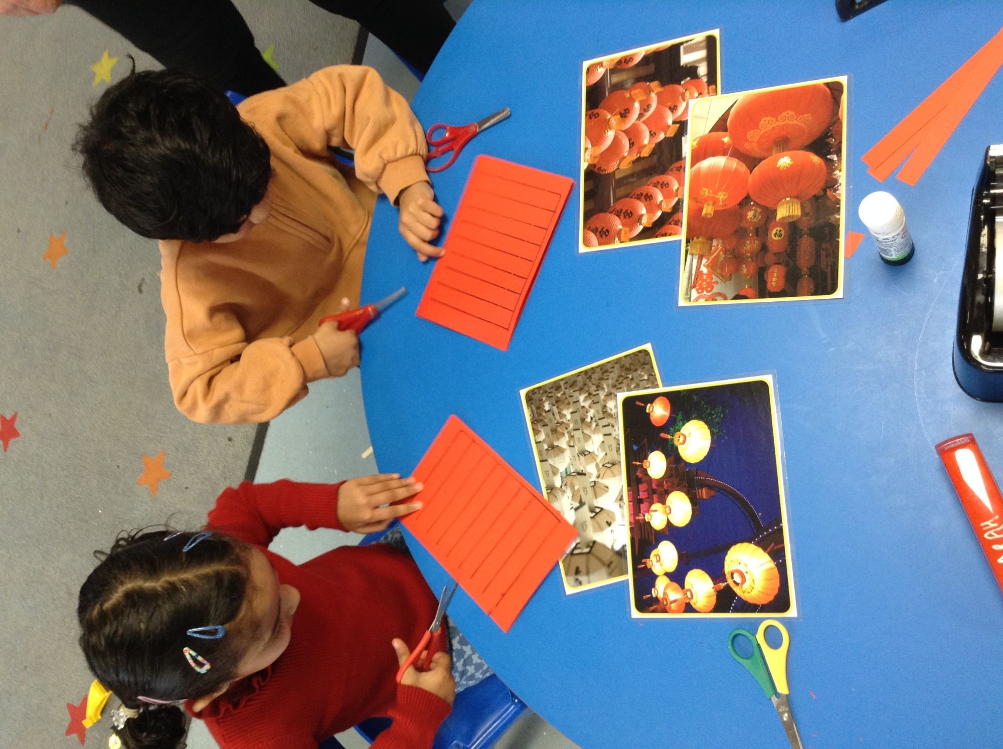 We made colourful paper lanterns, like those displayed in homes, shopping centres, parks and decorating the streets during the festival. We learnt that red is a popular colour for paper lanterns as it is believed to be lucky.