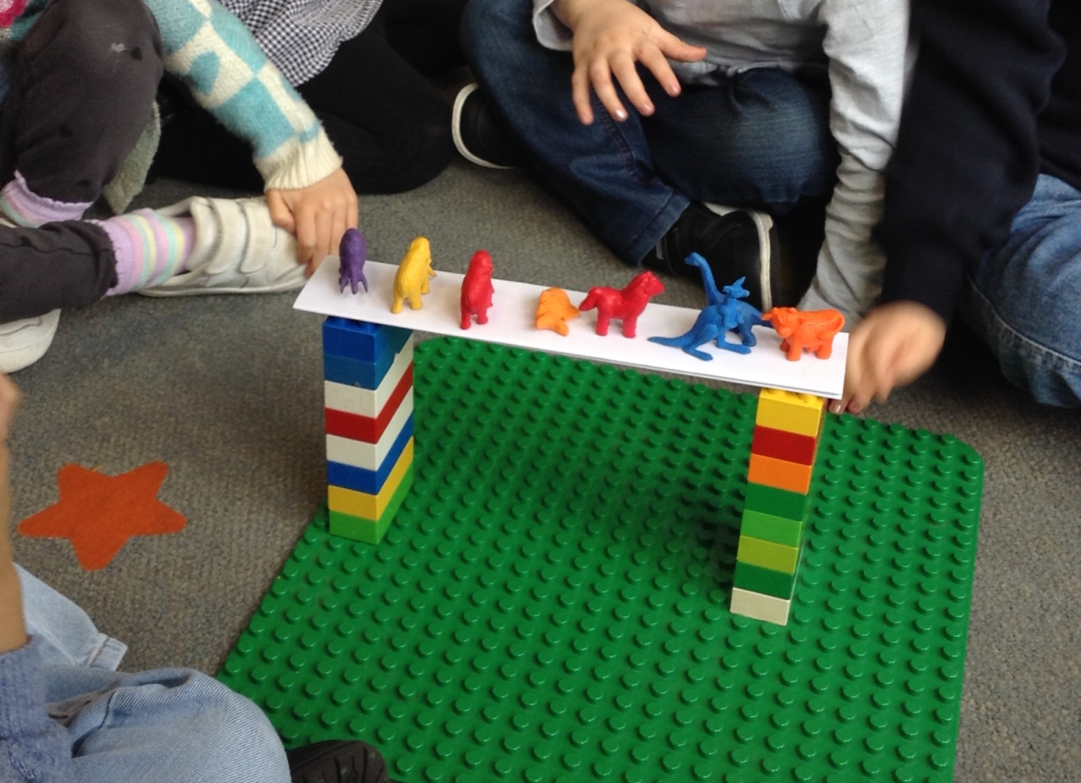 Nursery took part in an investigation to see which of three paper bridges was the strongest. We tested the strength of each bridge by placing plastic animals on to it one by one until the bridge fell down. We discovered that folding the paper multiple times to form a zig-zag shape made the paper stronger. The children had fun singing 'London Bridge is Falling Down' whenever the construction collapsed and used their knowledge of the song to suggest bridge building materials that would be far stronger than paper.