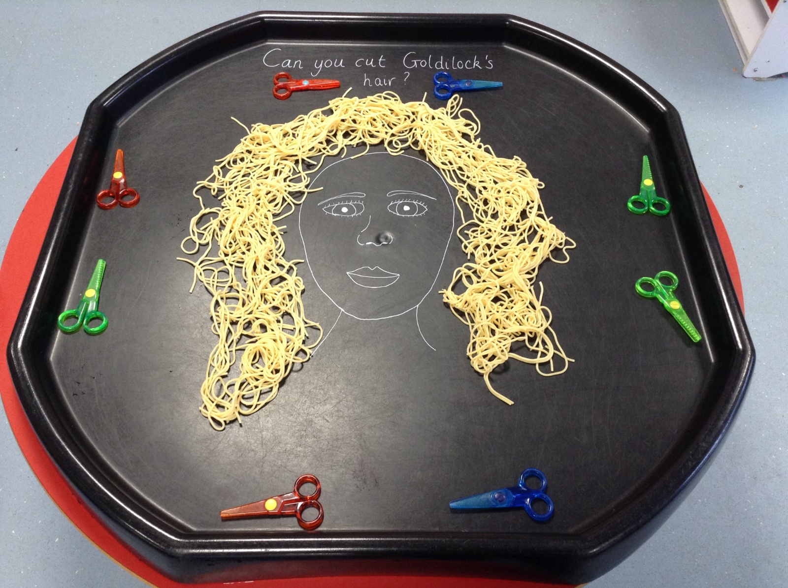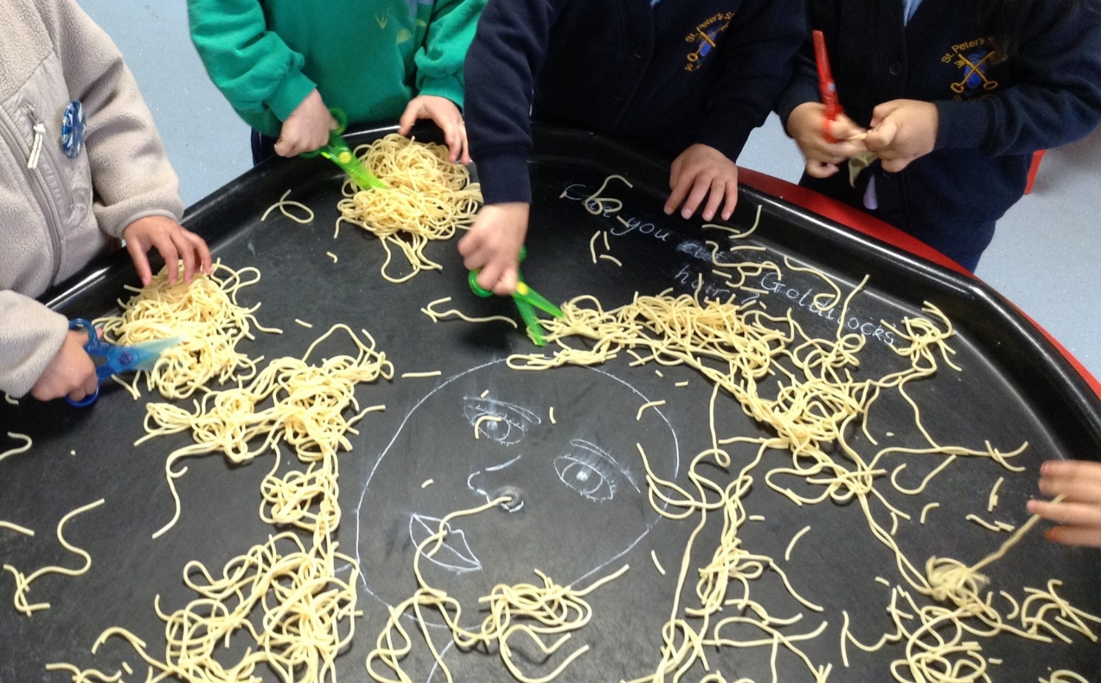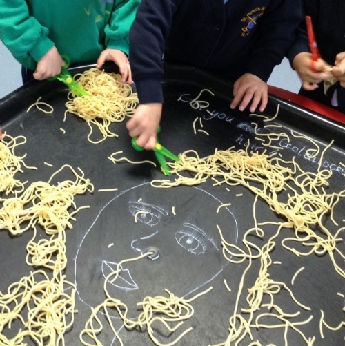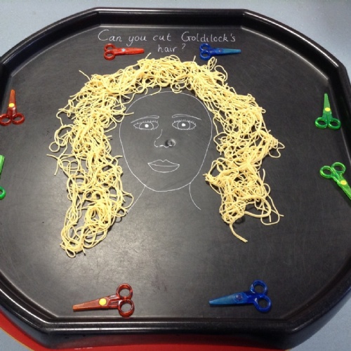 They also had great fun giving Goldilocks a hair cut, practising their scissor hold as they snipped through her spaghetti curls.