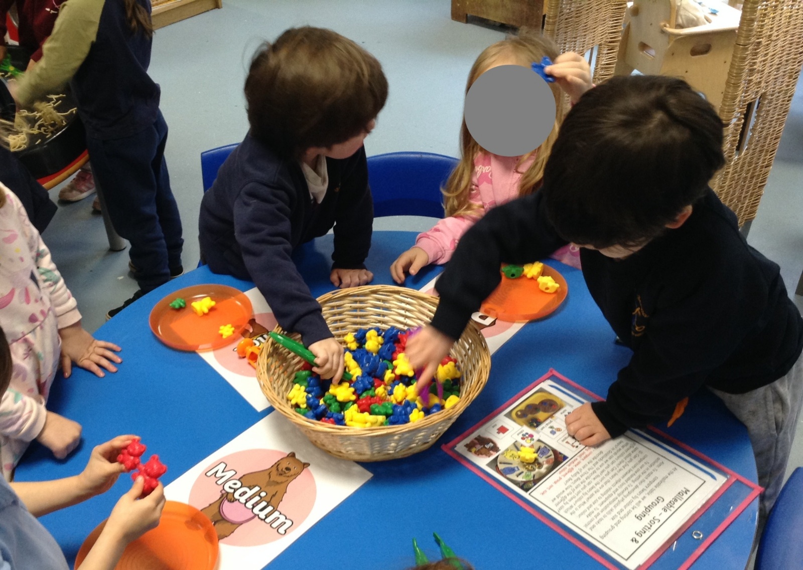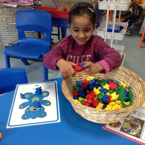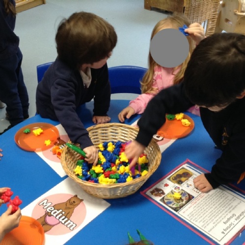 During 'Busy Fingers' the children utilised their fine motor skills to sort compare bears by size and colour.