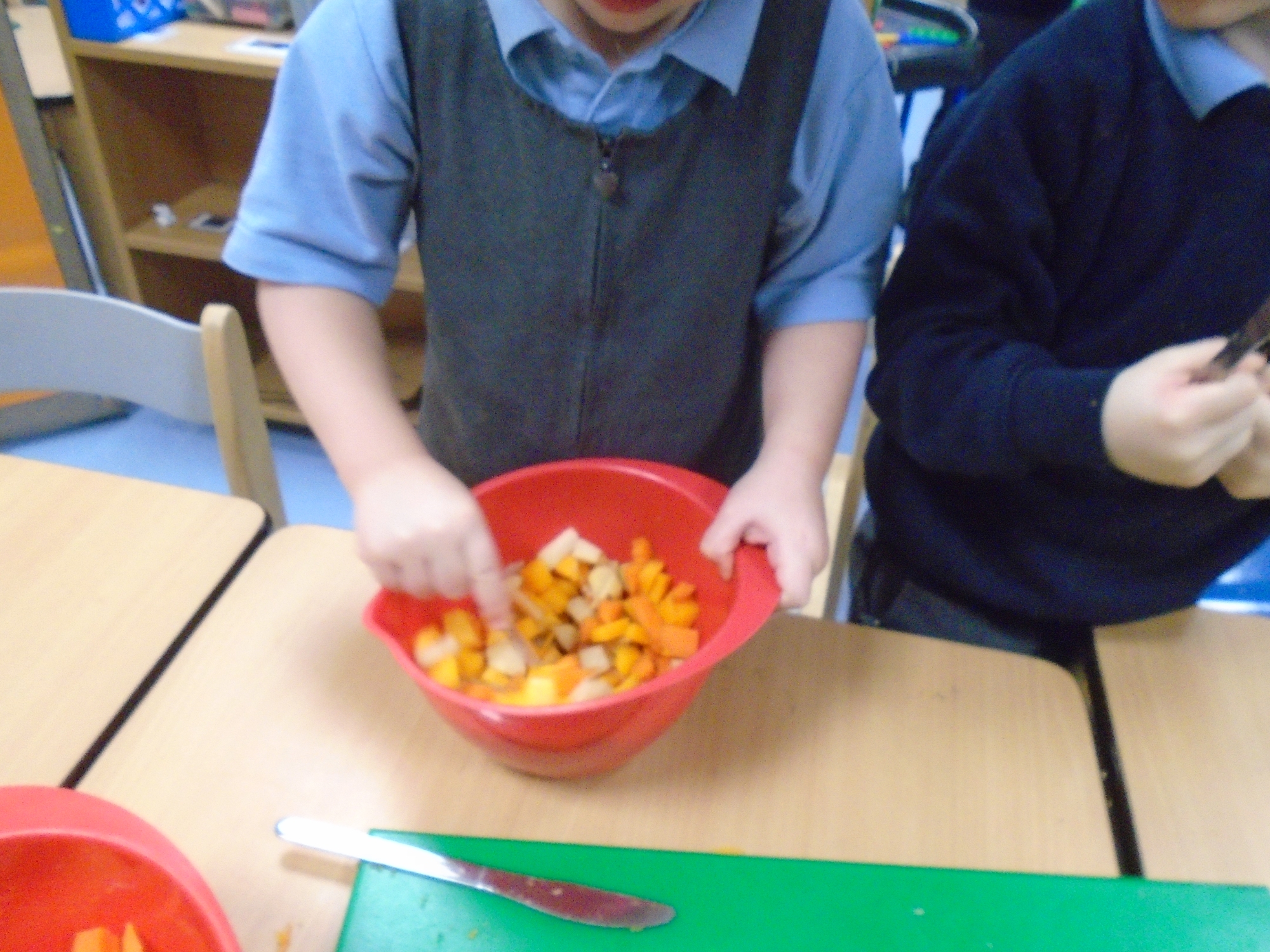 This story is all about taking turns, exploring what a good friend is and working as a team. Reception worked together to make a delicious vegetable soup! We had even more fun tasting it in the end – delicious! For our soup, we simply chopped butternut squash, potatoes and carrots and added them to a soup maker with some stock and salt and voilà!