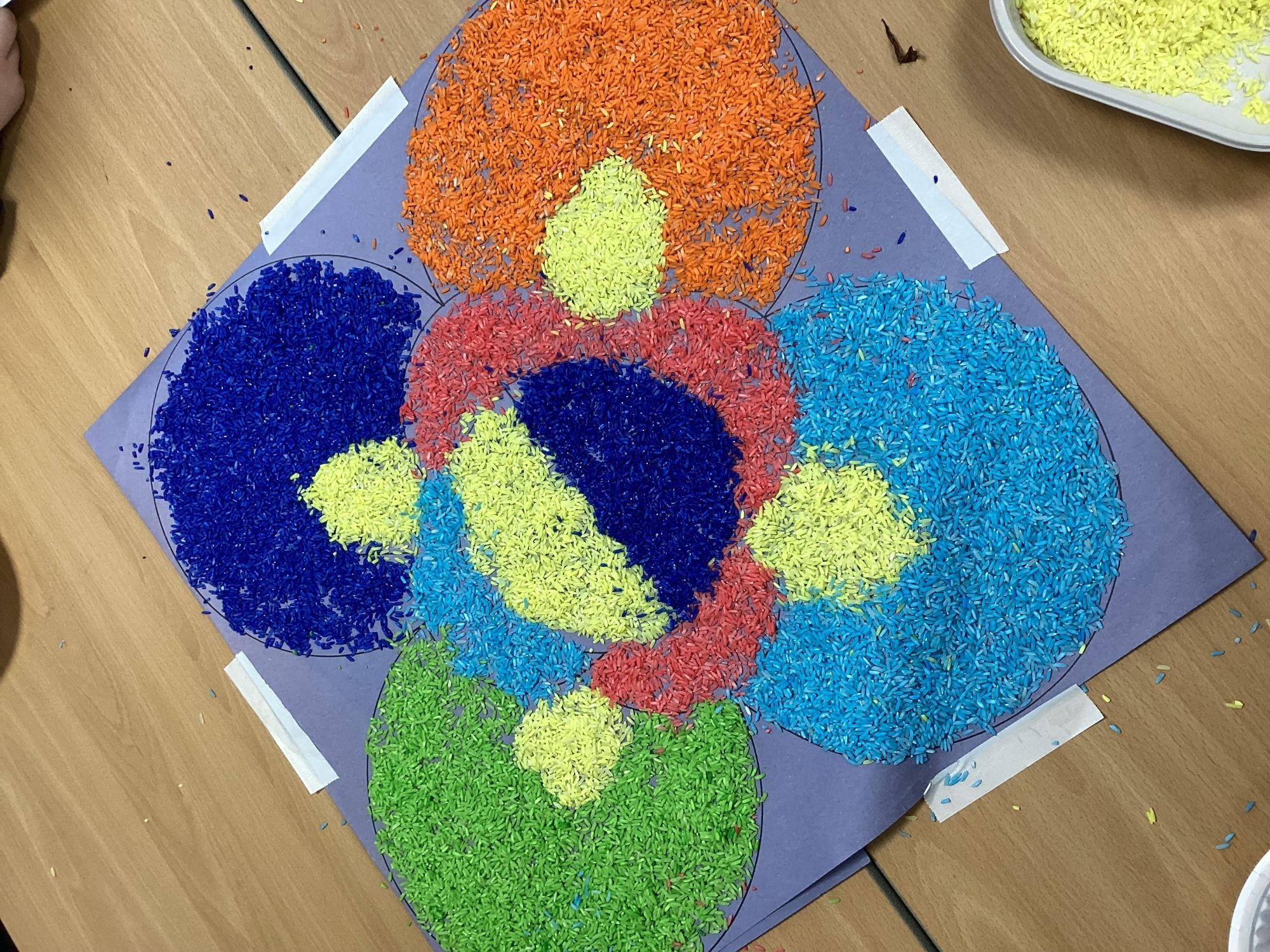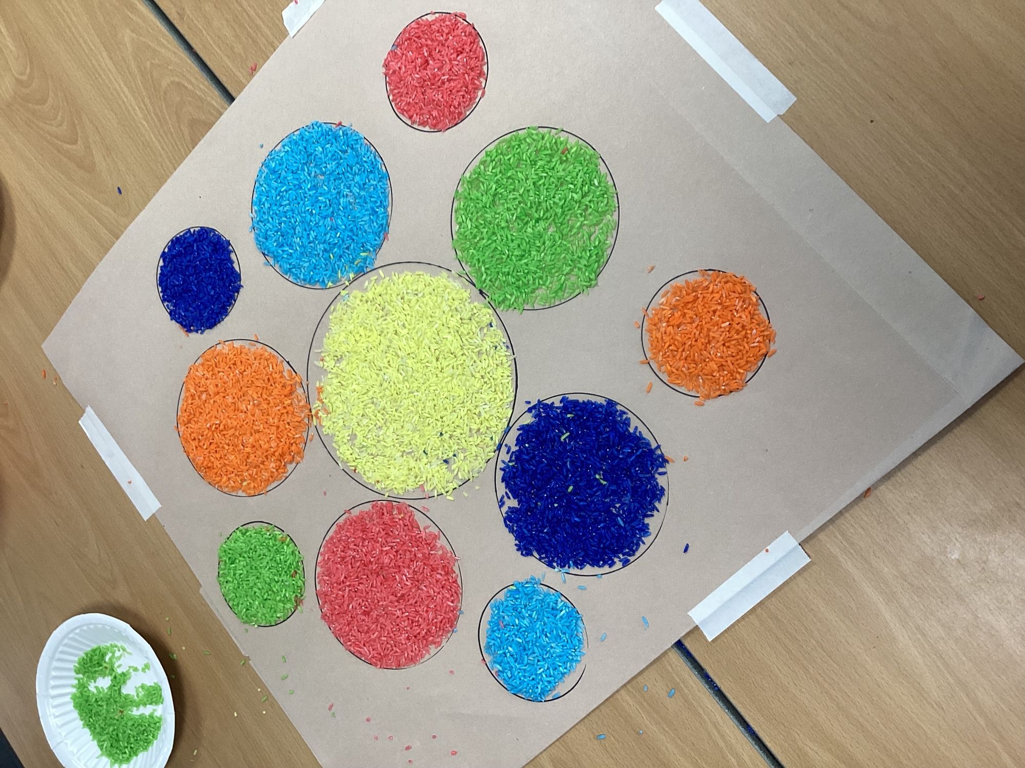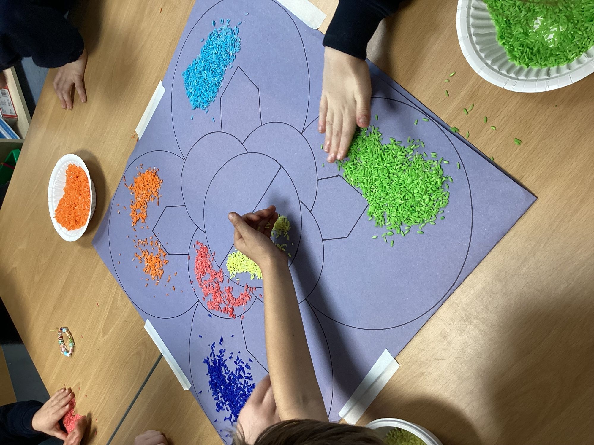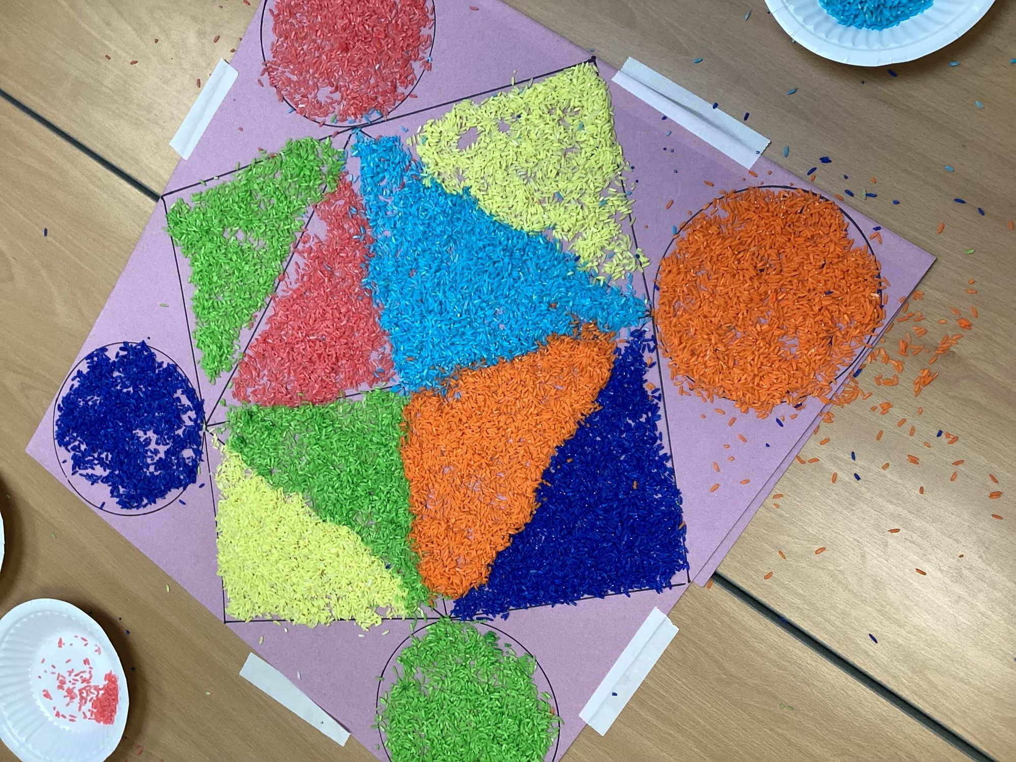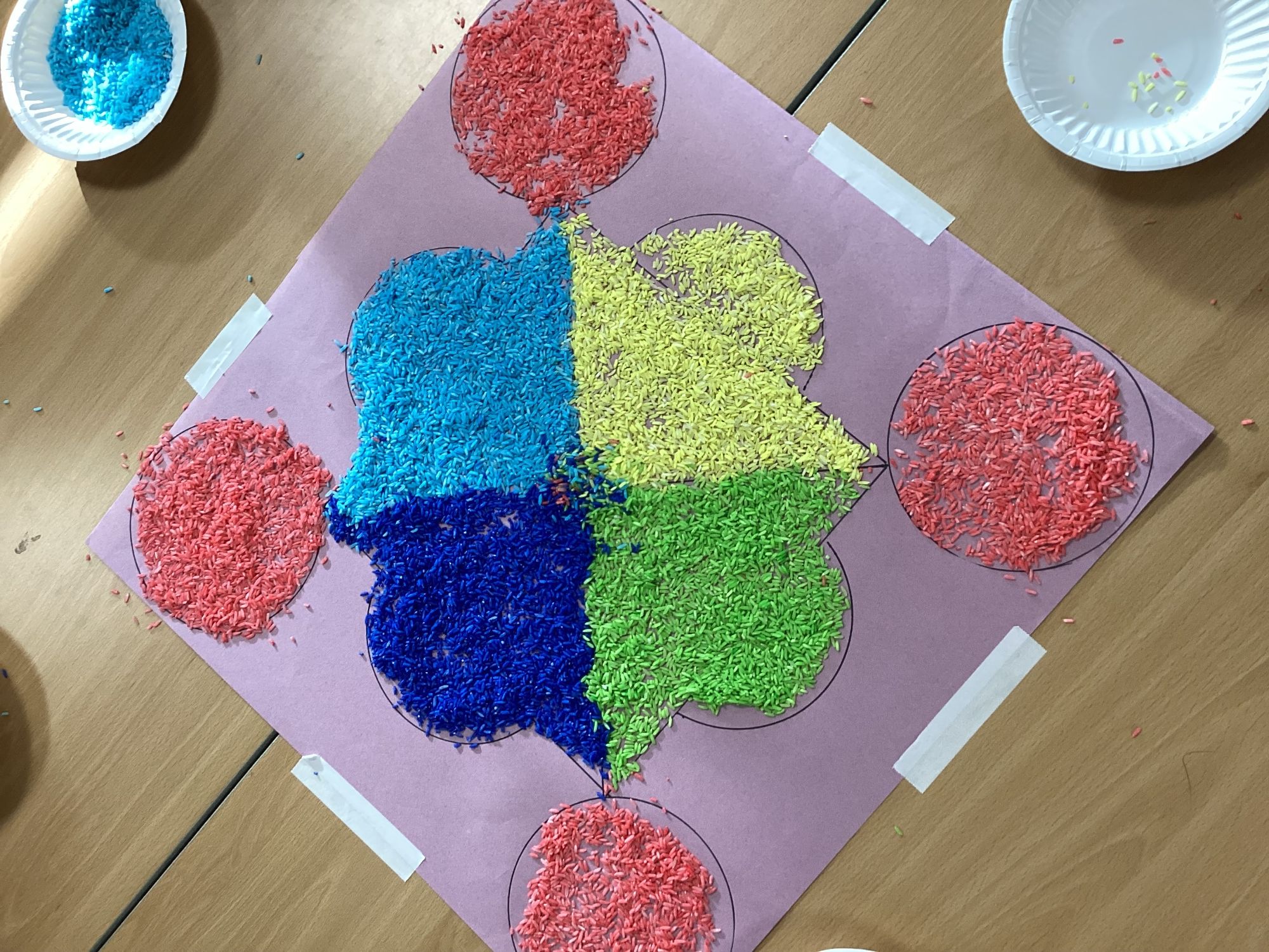We have been learning about Diwali and made these Rangoli patterns from coloured rice.