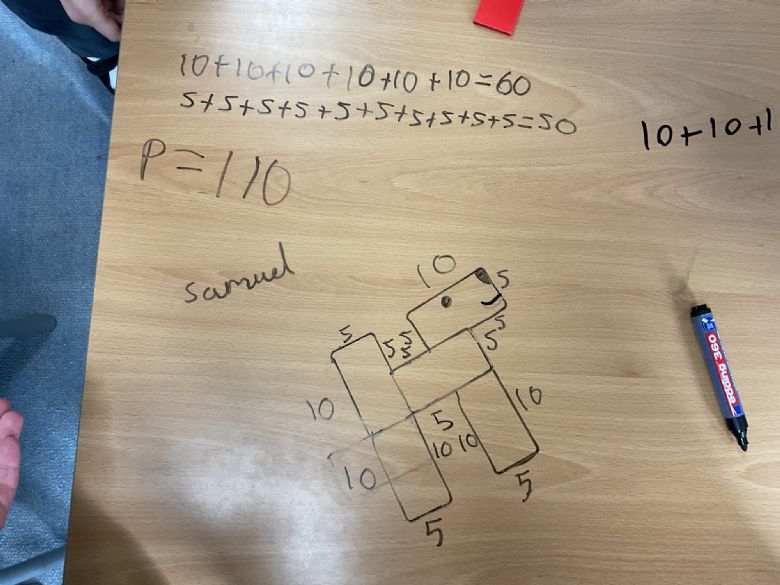 We worked together in Maths this week to calculate the perimeter of a shape composed of congruent rectangles.