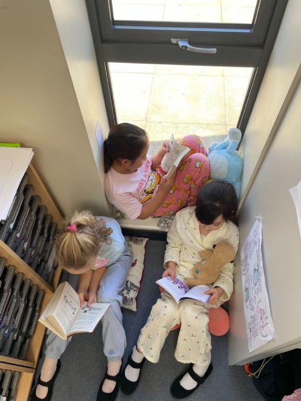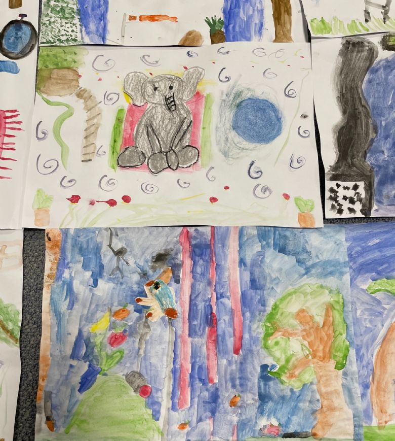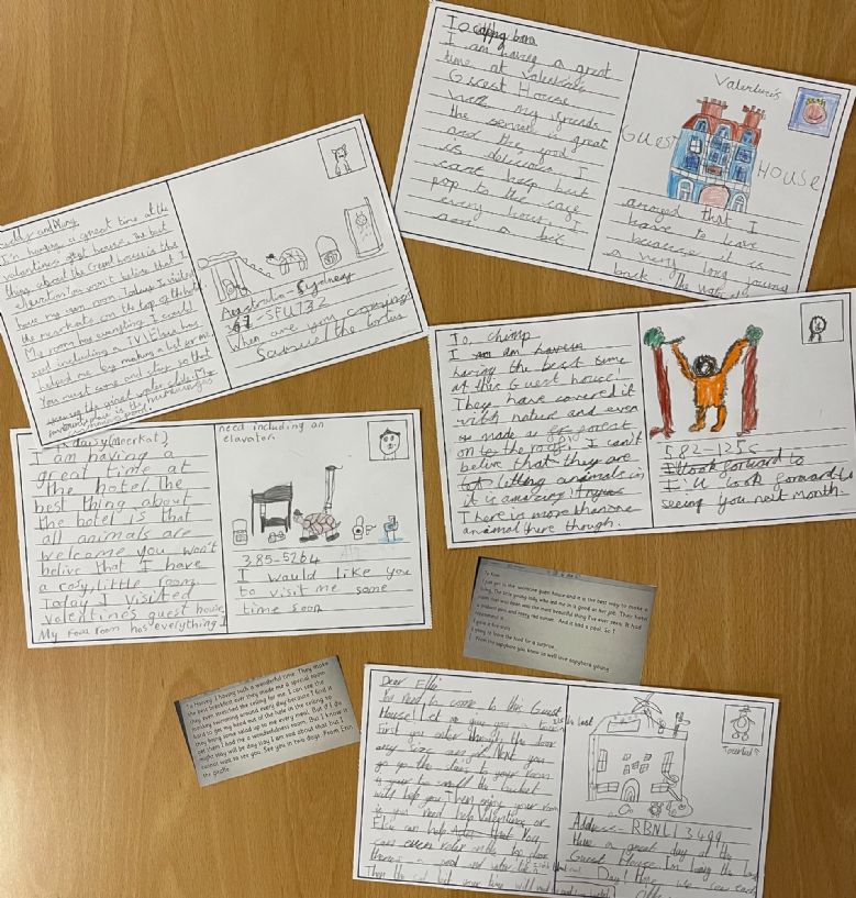 It was wonderfully cosy to come to school in our pyjamas for World Book Day. We started the celebrations with a circle time all about books. The theme for the day was books for empathy and in Wrens, we read Valentine's Guest House by Sam Sharland. Elsie and her Mum, Valentine, make lots of changes to their hotel to accommodate unexpected guests like Emmet the tiger. We wrote postcards, imagining ourselves as one of the animal guests. Together we worked in small groups to imagine how Elsie and Valentine might accommodate other guests such as koalas, horses and even orcas! We painted guest rooms in watercolours and added in our animal guests in oil pastels. The afternoon was busy too with reading with our friends in Year 2 Owls and enjoying a bedtime story with children and adults all across the school. We managed to squeeze in some cosy reading time too!