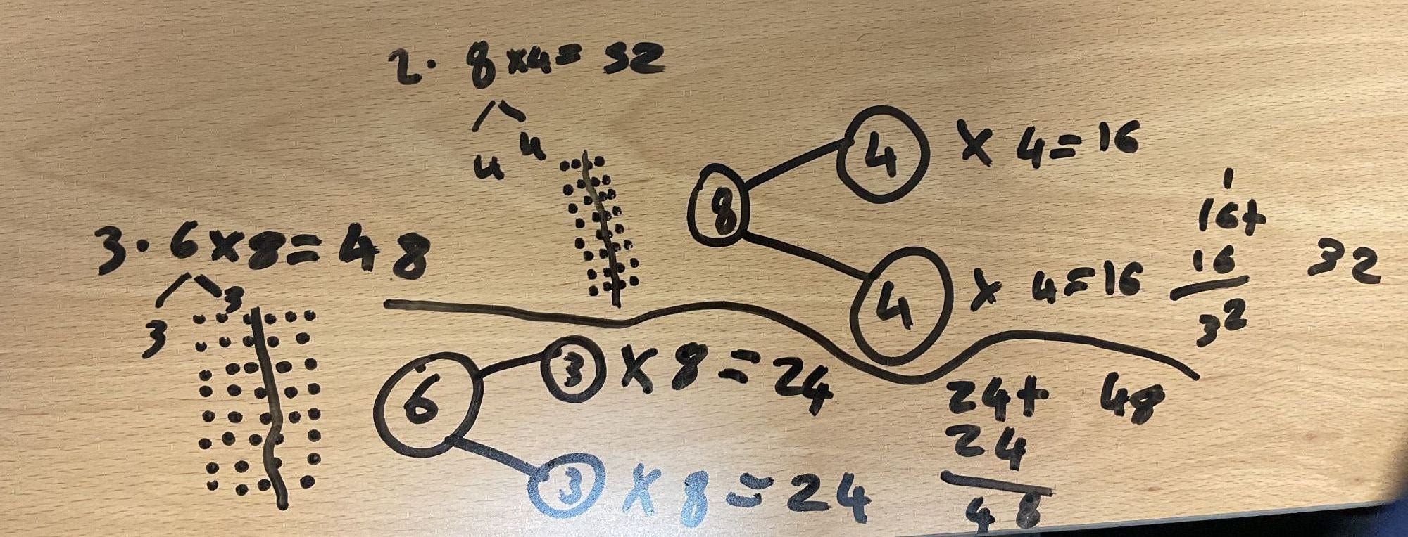 Wrens are working very hard at mastering their times tables. While we need to practise our quick recall of times tables facts, we have also been learning about the associative and distributive laws of multiplication. We worked in pairs to apply the distributive law to solve multiplications which we do not yet know mentally.