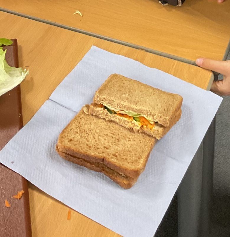 In Design and Technology, we evaluated shop-bought sandwiches according to the Eatwell plate which we remembered from Science and planned our own healthy, savoury sandwiches. In preparation, we practise our spreading, slicing, chopping and grating skills. Finally, we made our own and wow, they were delicious and healthy!