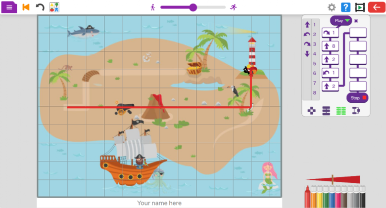 In Computing this afternoon, we used 2Go on Purple Mash to navigate around a treasure island. We used forwards, backwards and rotation to move our 'turtle' to different points on the island. It was tricky to decide whether they should rotate clockwise or anticlockwise.
