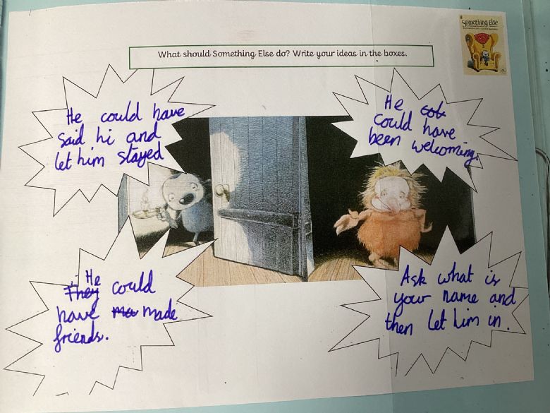 Today, we all enjoyed celebrating World Book Day, dressed in our pyjamas and lounge wear! St Peter's theme for World Book Day this year was empathy, so we began the day by reading and discussing the book 'Something Else' by Kathryn Cave.  We discussed questions such as: