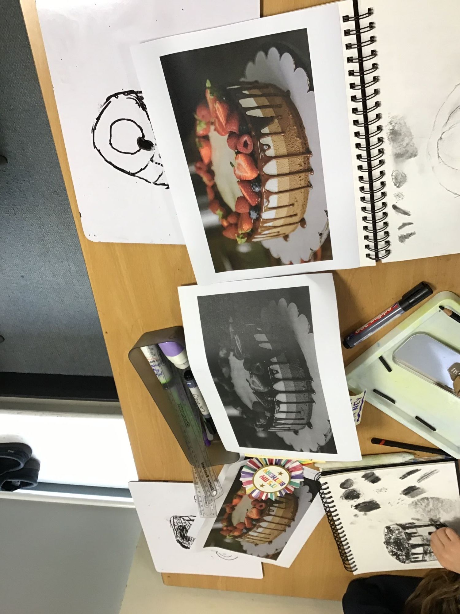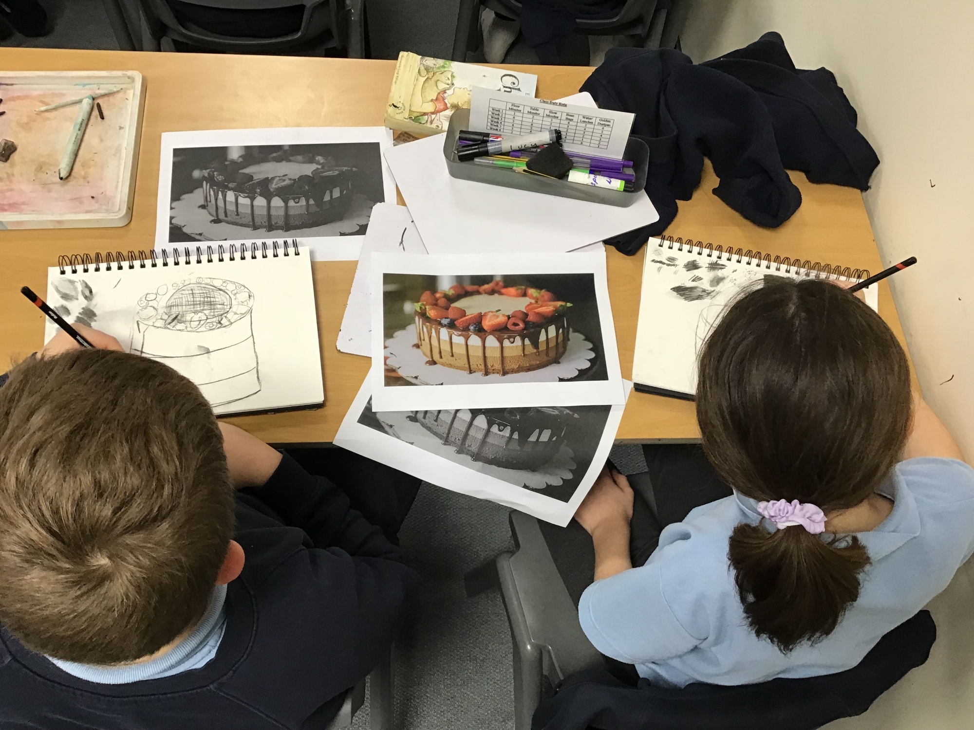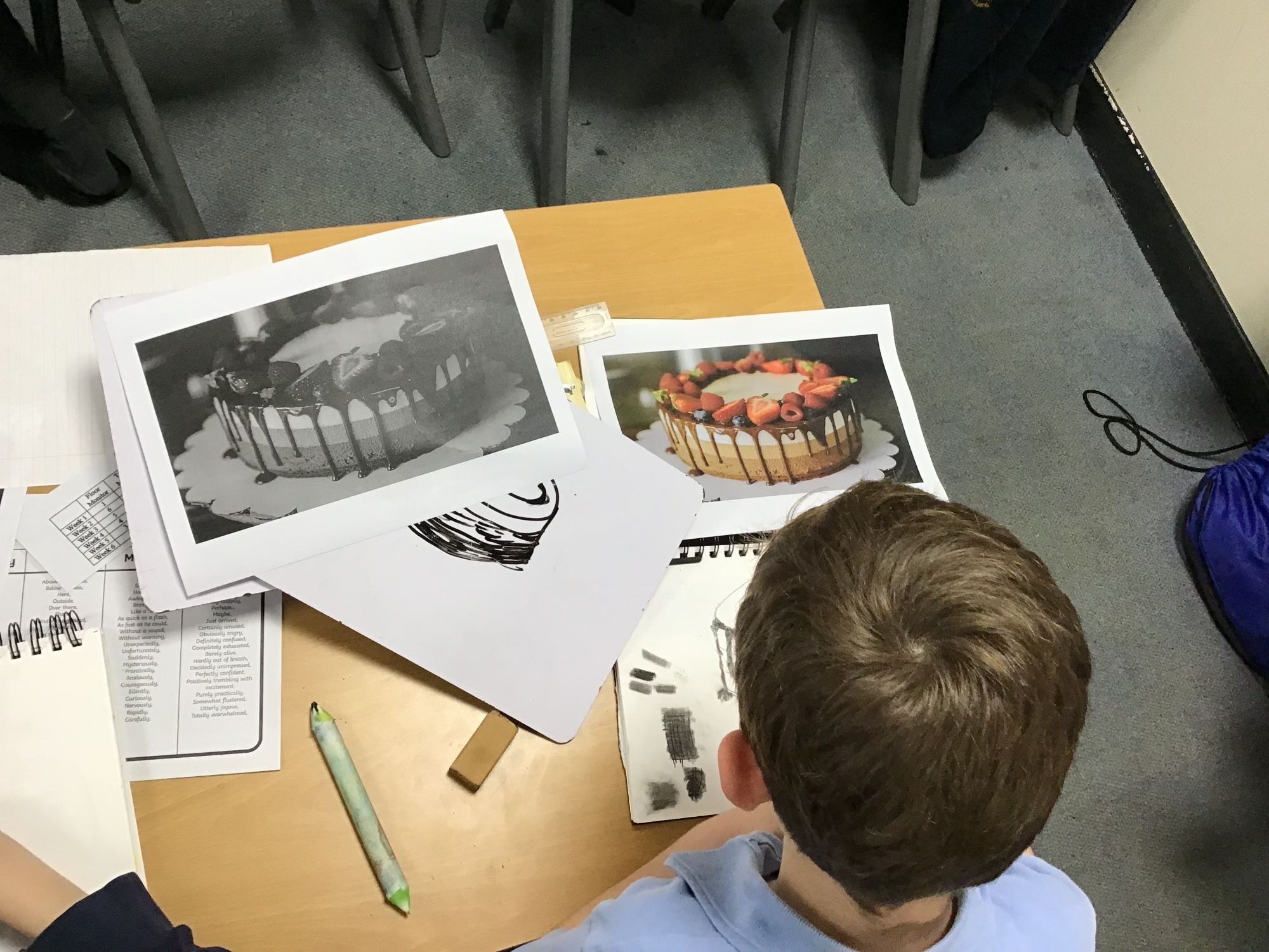 Today, we completed our next step in our Art unit. We continued with our observational drawings and tried to copy a photo of a cake as realistically as possible, focussing on shape, proportion, texture and tone!