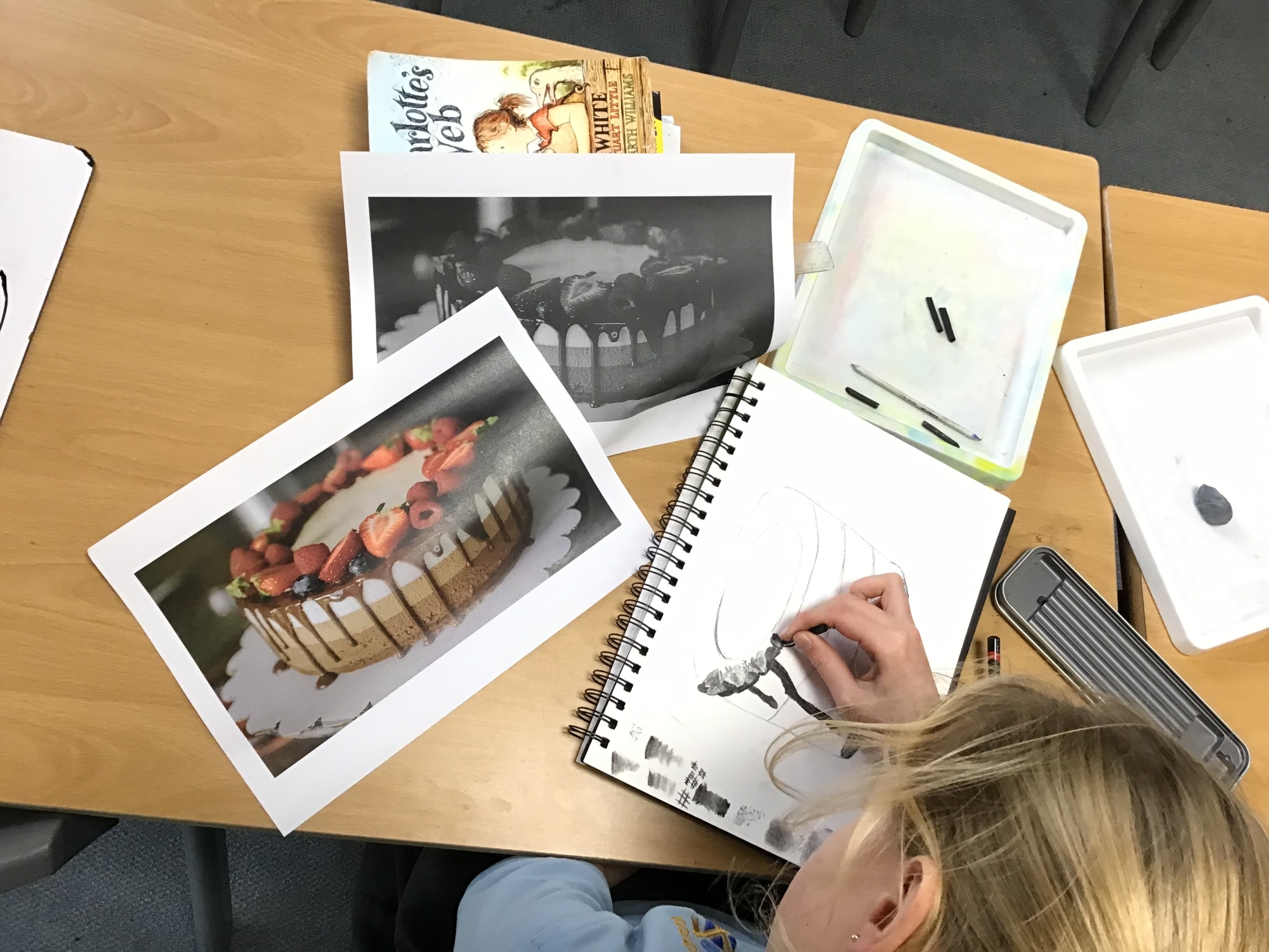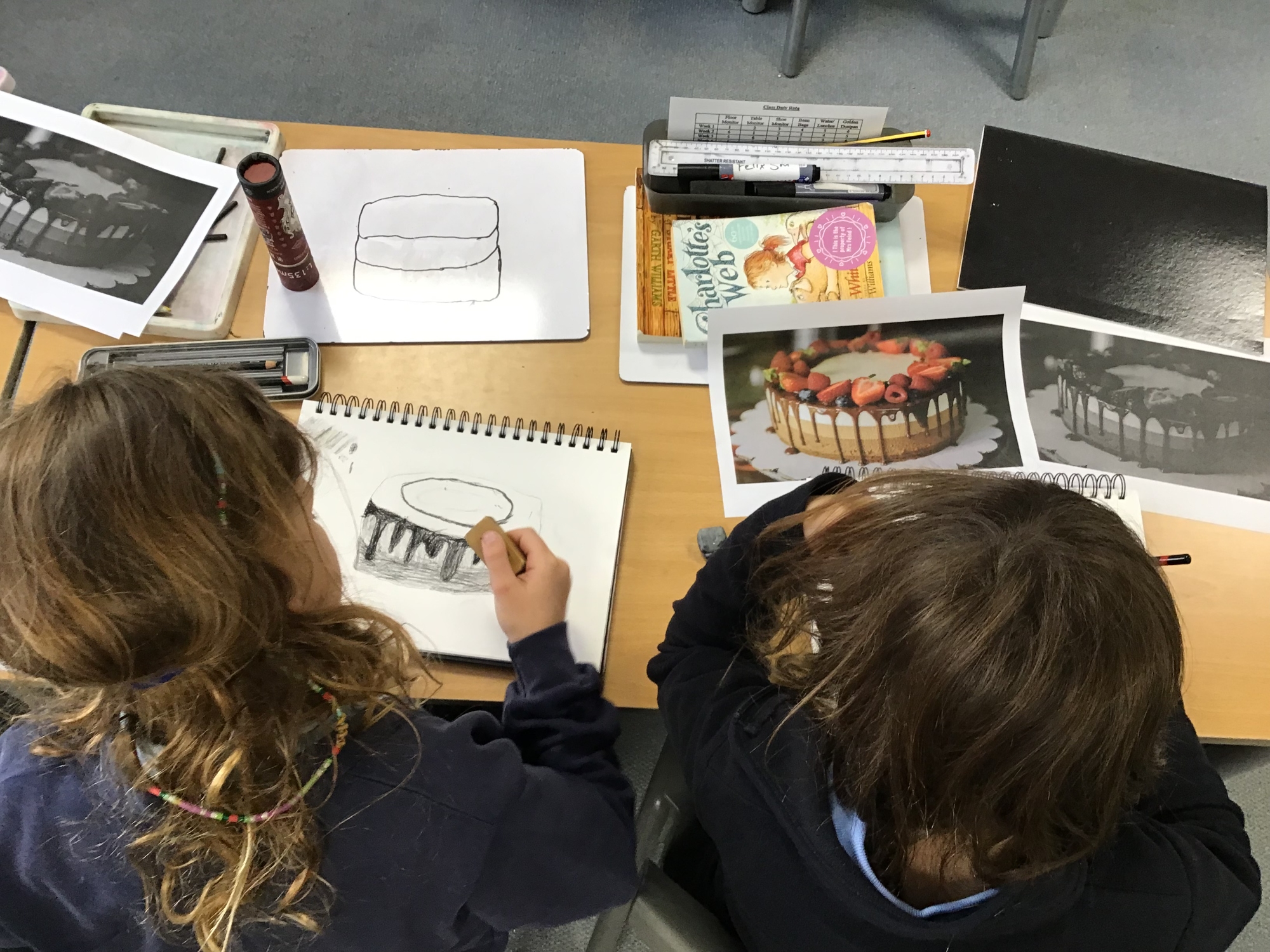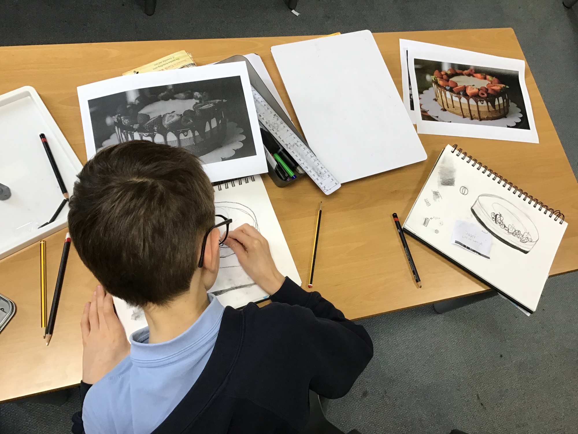 Today, we completed our next step in our Art unit. We continued with our observational drawings and tried to copy a photo of a cake as realistically as possible, focussing on shape, proportion, texture and tone!