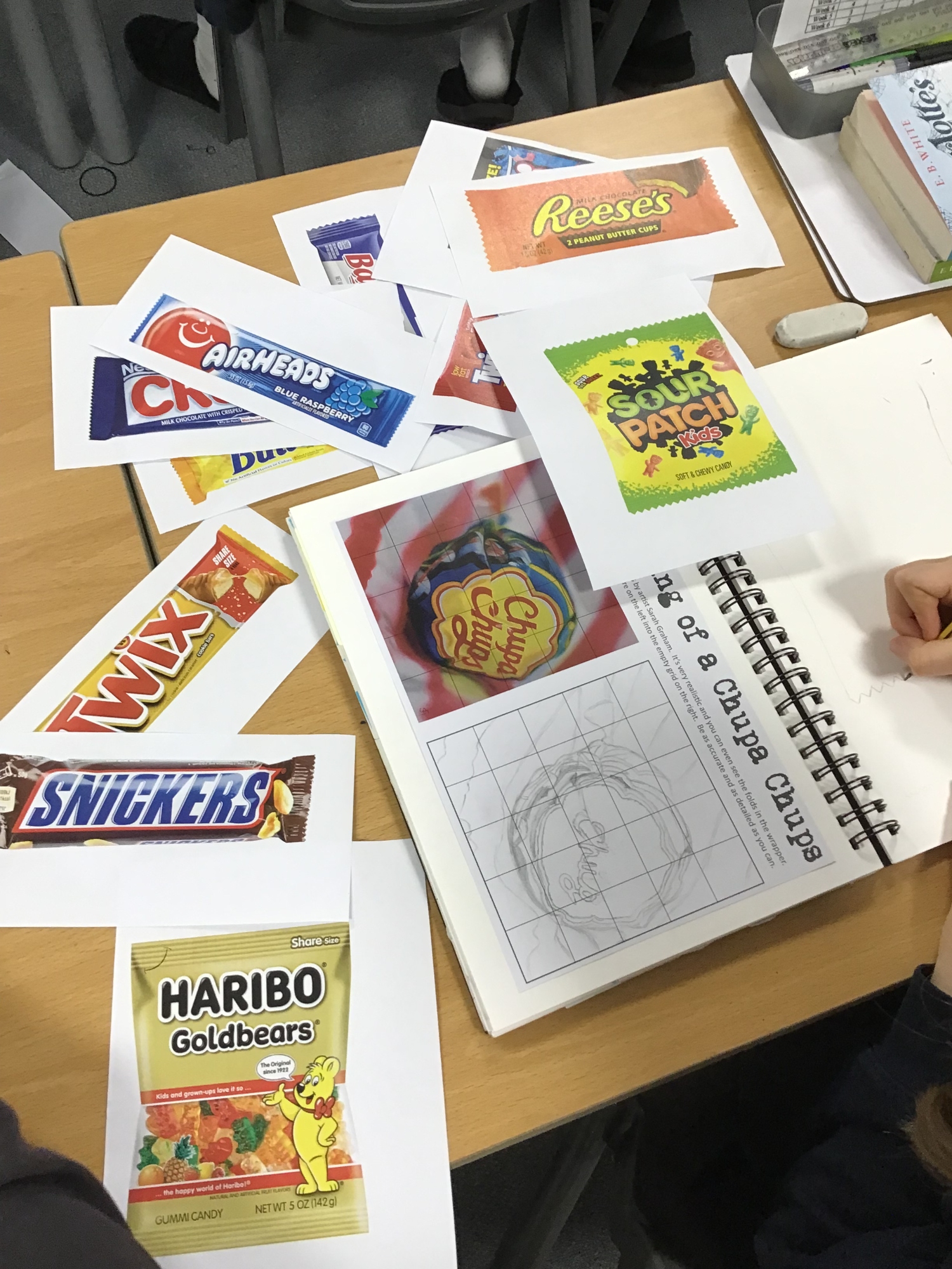 In Art, we have started working on our final piece for this unit: detailed drawing of a sweet wrapper. The children chose a photo and draw it with as much attention to detail as possible.