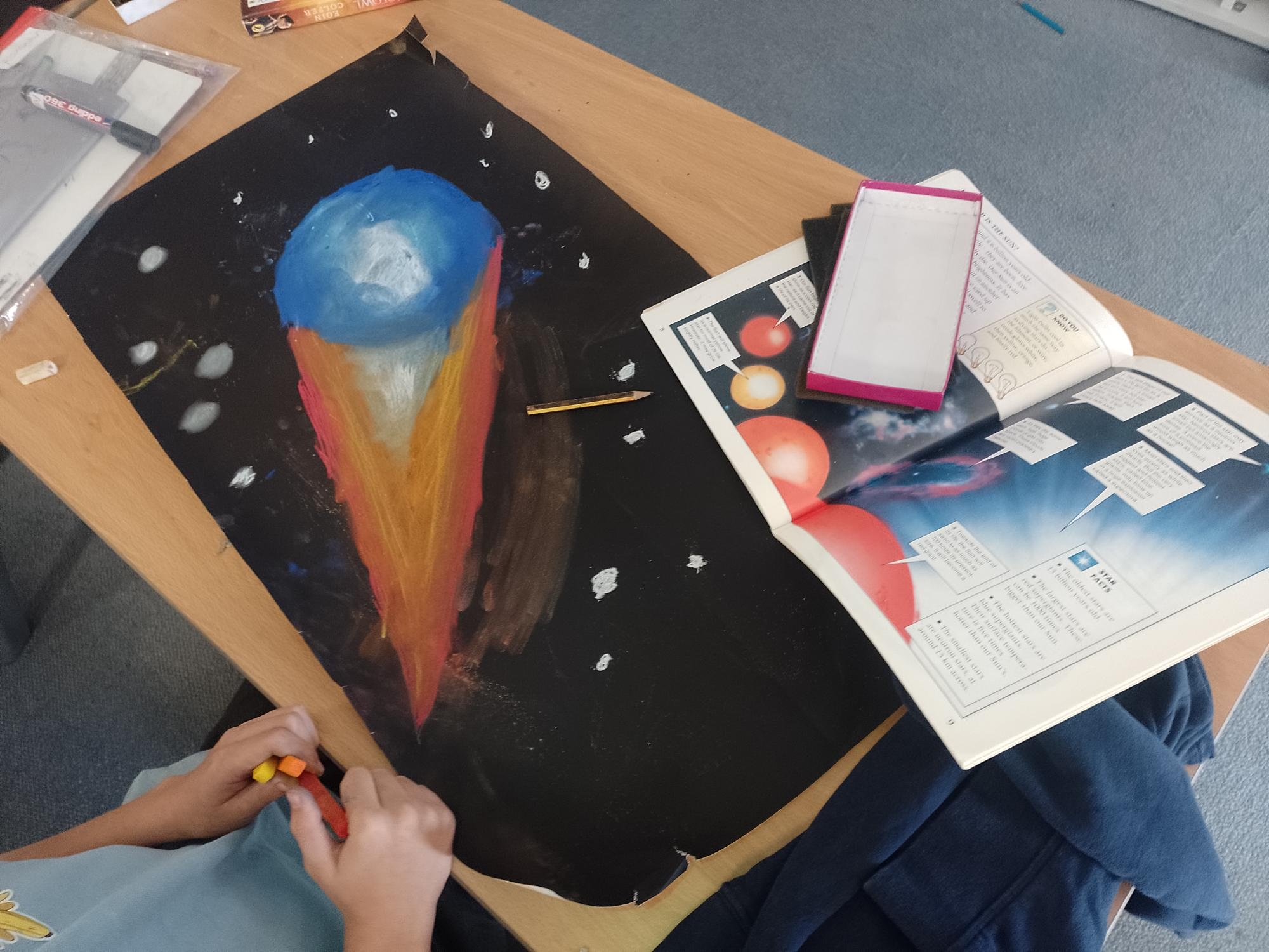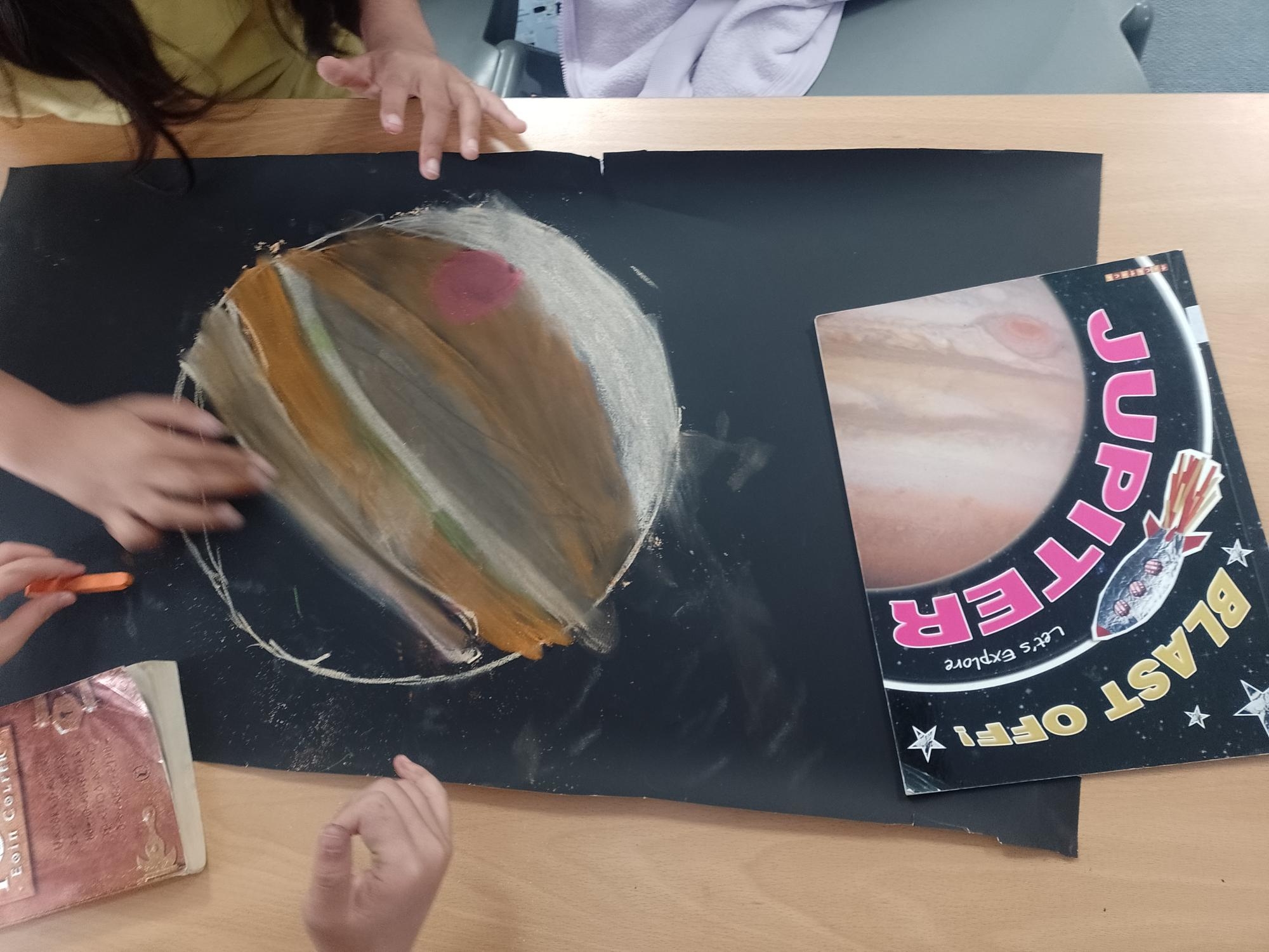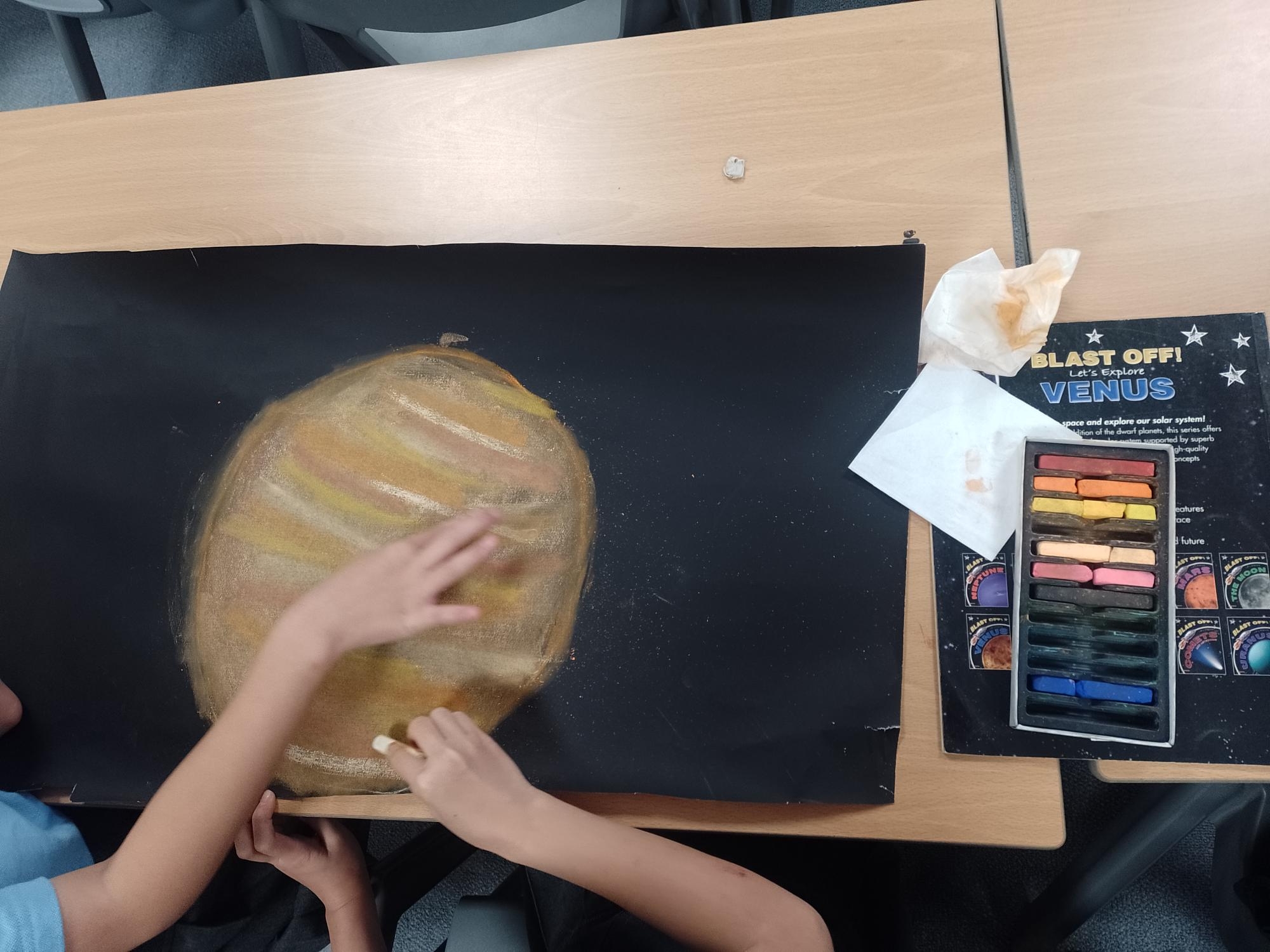 To get ready for our assembly on Friday, we made space-themed pastel artwork of the planets and the other objects in our Solar System!