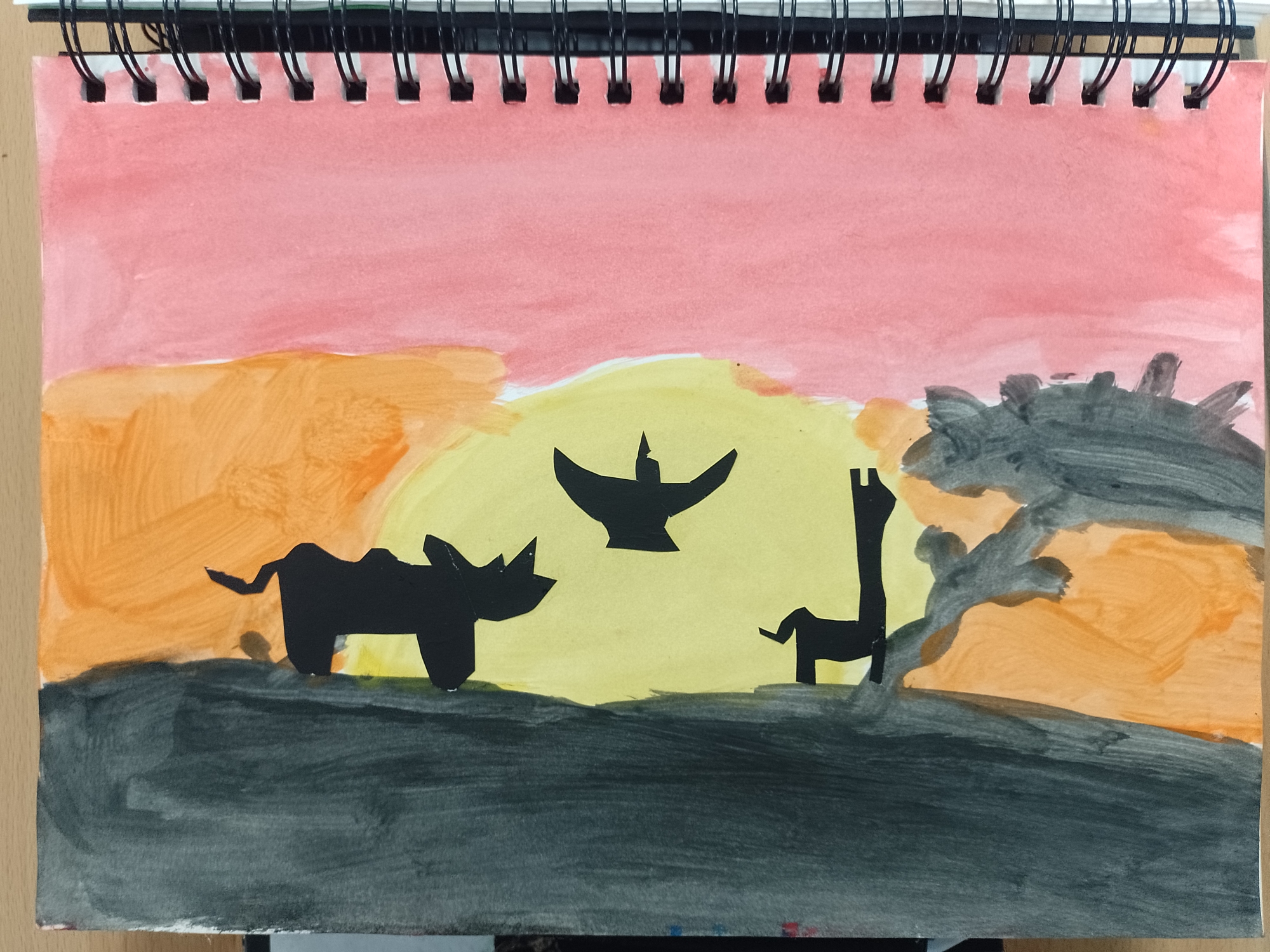 This afternoon, we learned about some of the wildlife in South Africa, looked at Miss Honour's Safari photos and created our own sunset silhouette images. Take a look at the photos for examples of our creations.