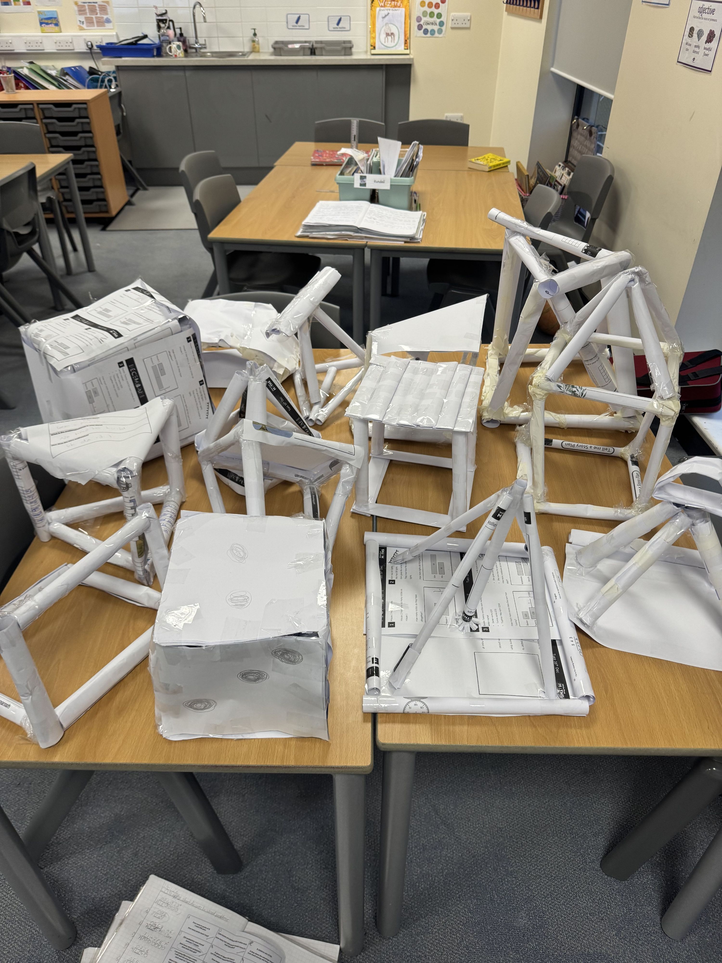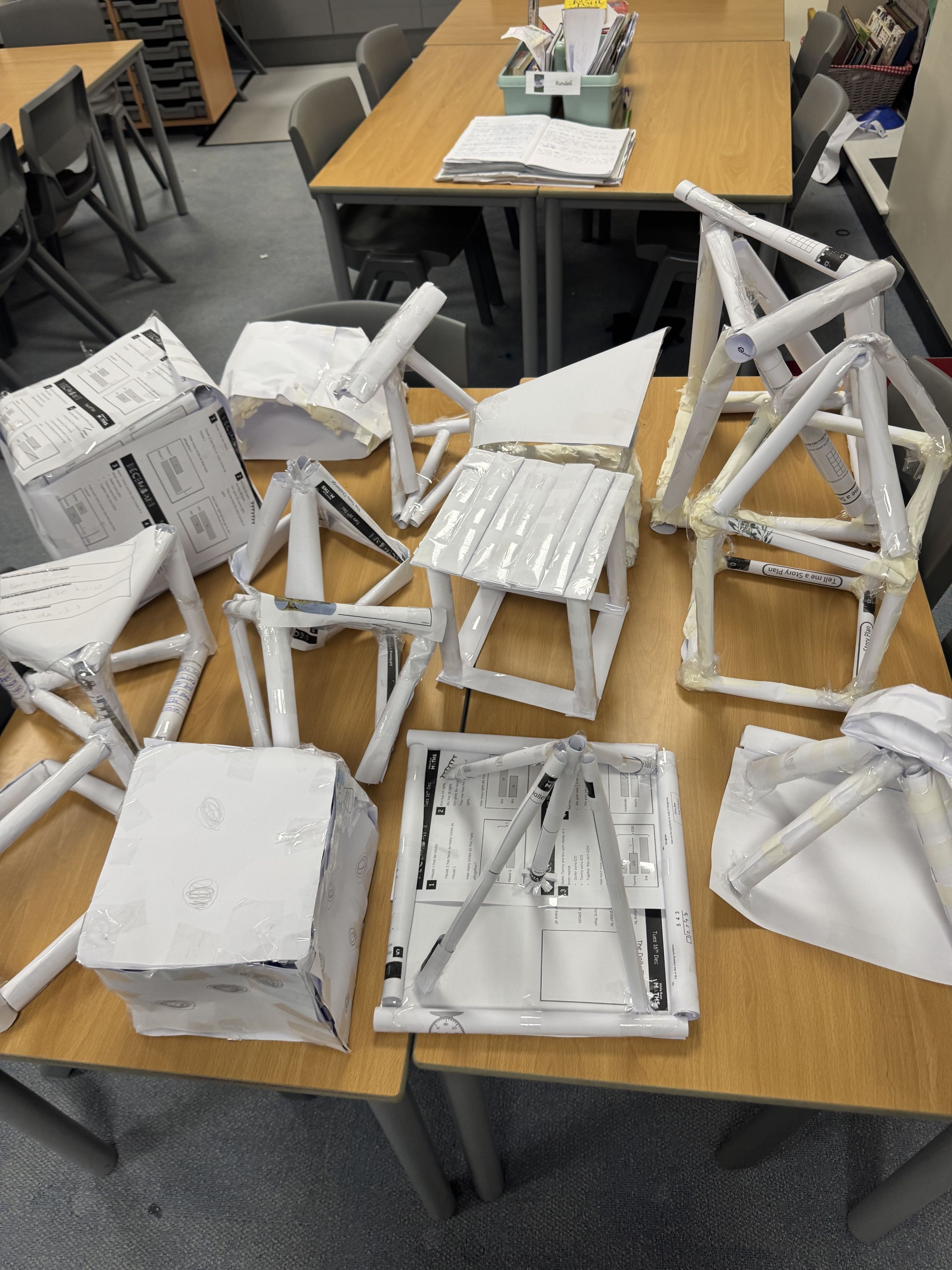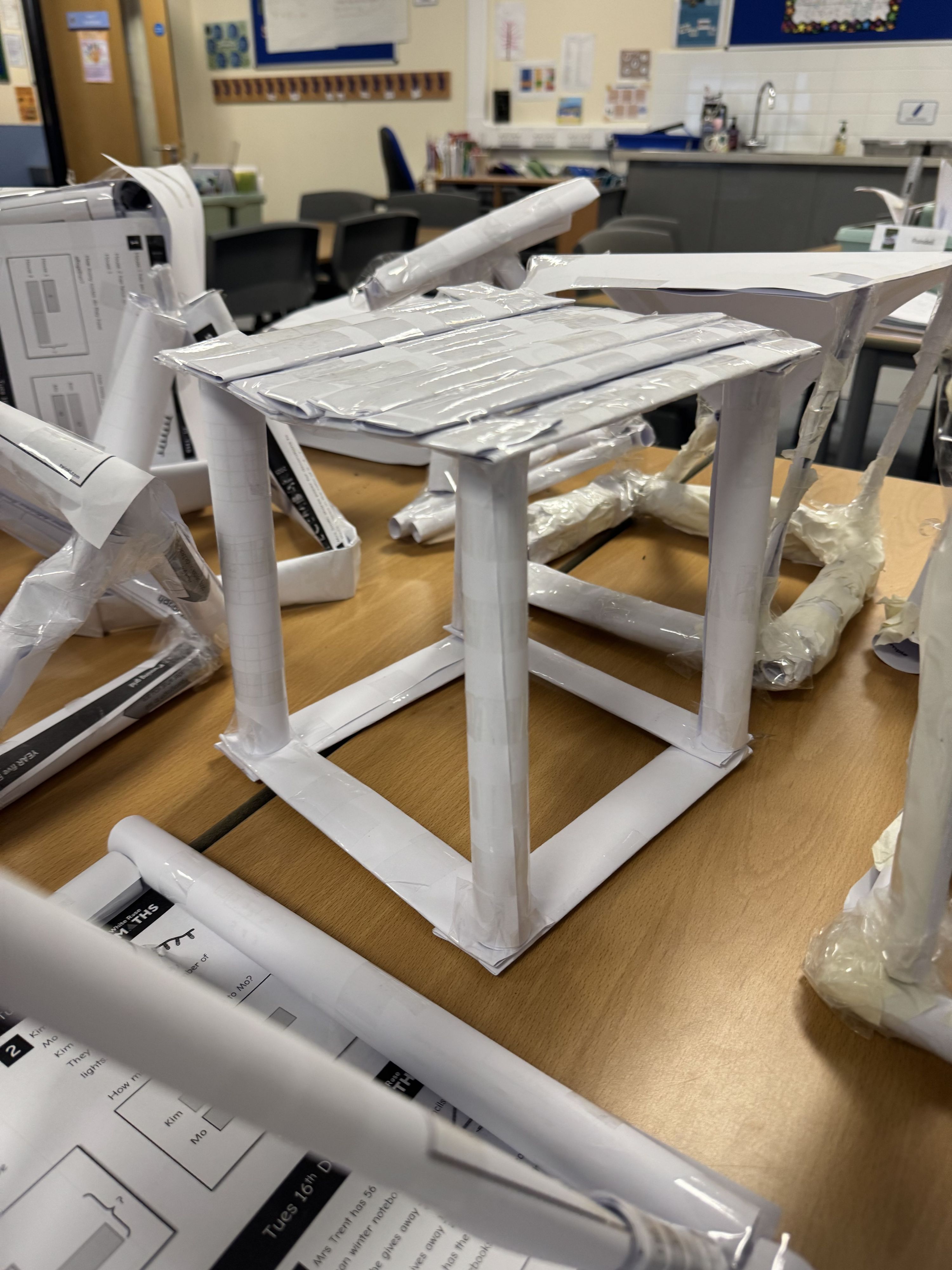 We created some prototypes of our paper structures in DT. We were exploring different paper folding techniques to ensure our structure held its form and could support any added weight.