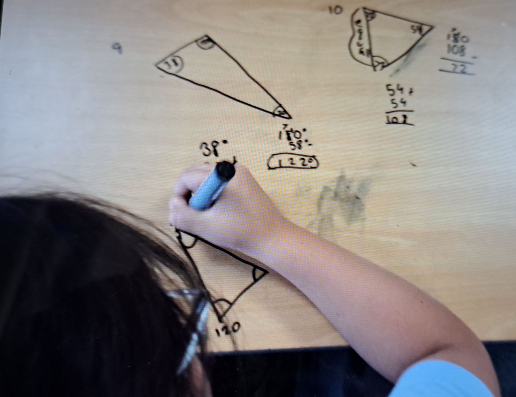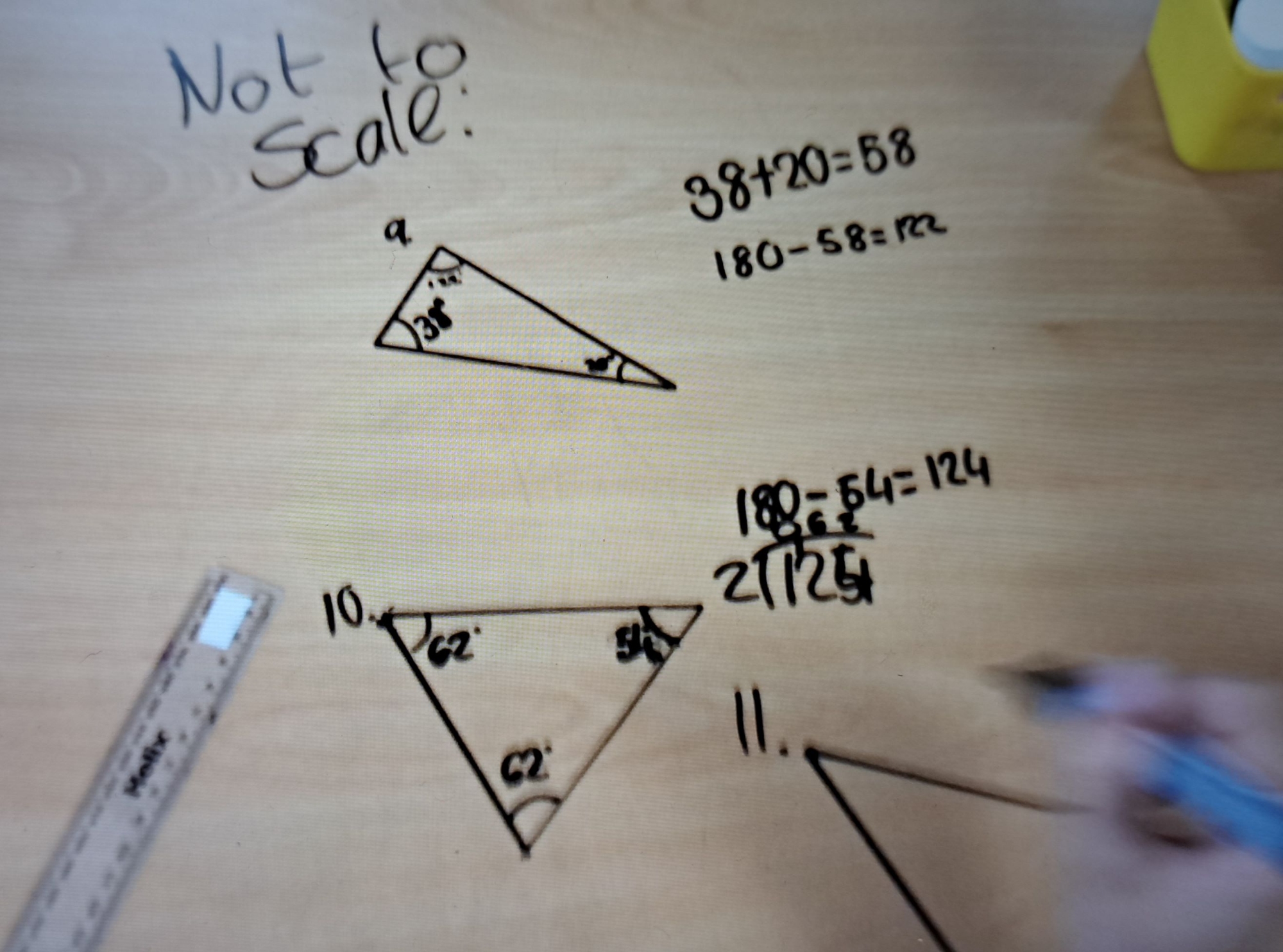 We have been learning about 2D shapes as part of our Geometry Fridays. This has included exploring types of triangles as well as finding missing angles in triangles. We worked out the missing angles on our tables and then checked through our answers together with Mr Watts. It was fun!