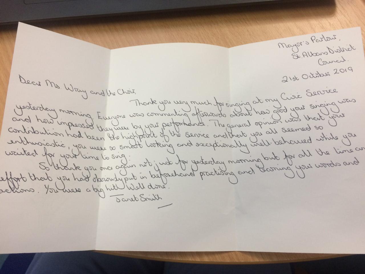Choir were invited to sing at the Mayor's Civic Ceremony on Sunday 20th October. They sang two songs and wowed the congregation. The mayor sent us a beautiful letter outlining how wonderful we sounded and how smart we all looked. You can listen to our audio performance below