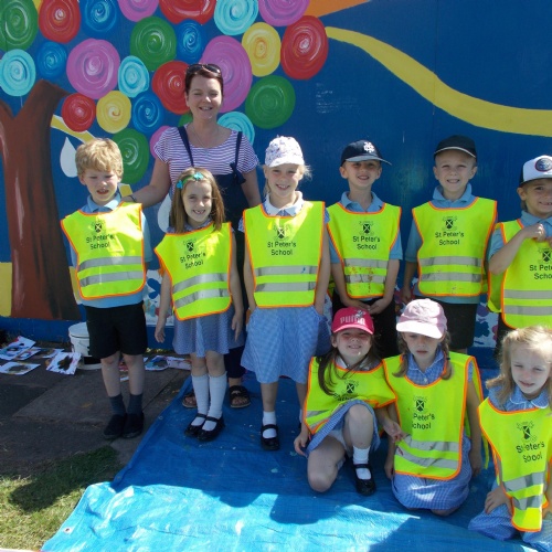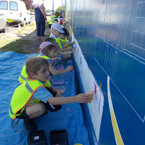 This week some of the year 1 and year 2 children were lucky enough to take part in a local community art project. Audrey Montet, a local artist, invited St Peter's to help paint a mural surrounding the King Offa pub on Wallingsfield walk. The children designed their own stencils and then worked together to create a beautiful bed of flowers and butterflies. We look forward to seeing the final product!